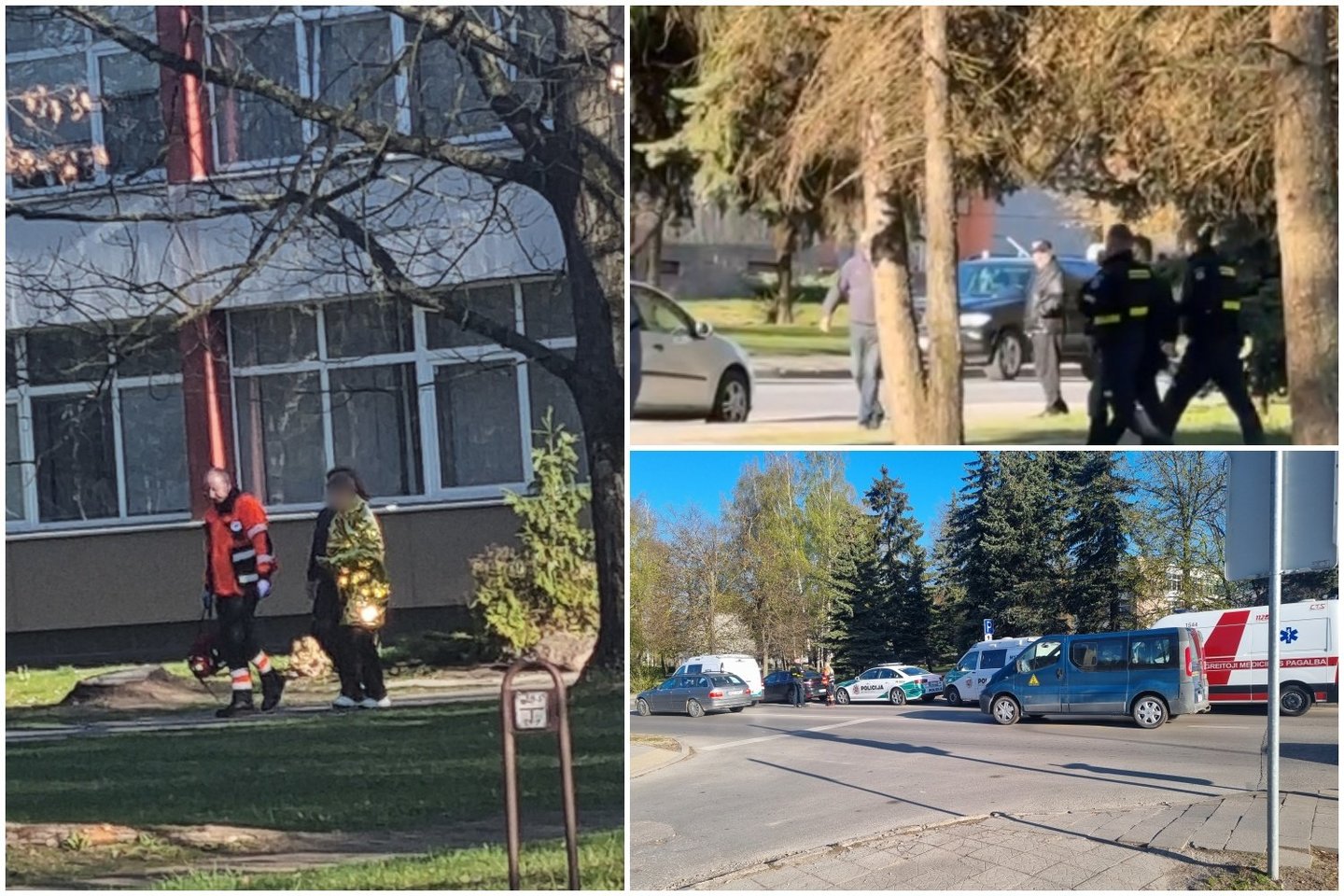 Gimnaziją apsupo gausios policijos pajėgos, įvykio vietoje dirbo greitosios pagalbos medikai, vaikai evakuoti į stadioną.