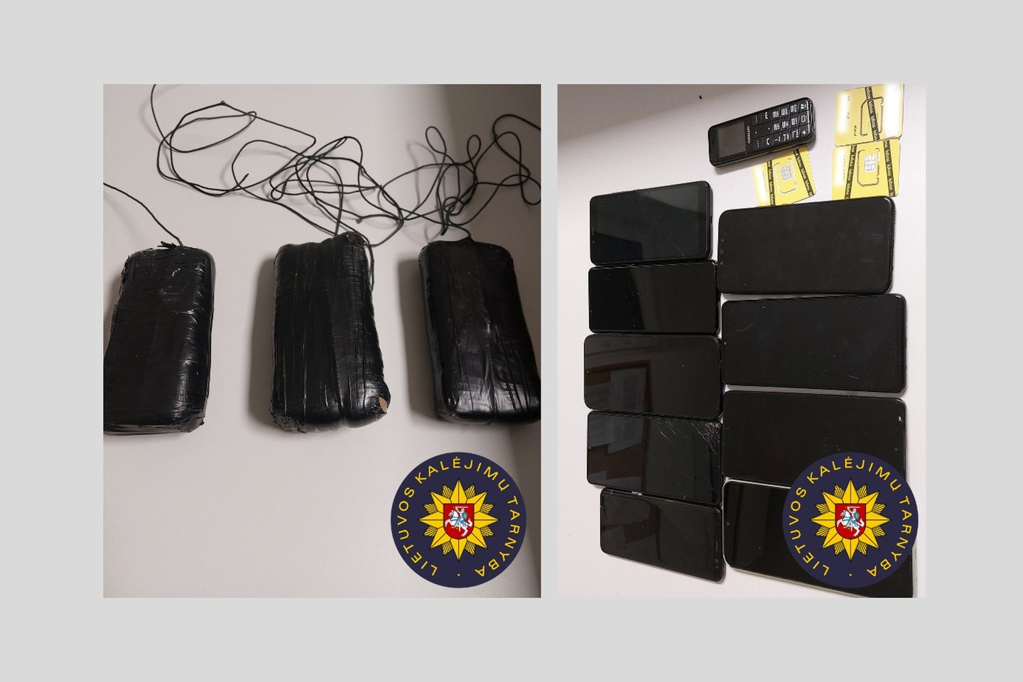 Nustatyta, kad jų viduje buvo 10 mobiliojo ryšio telefonų ir 3 SIM kortelės.