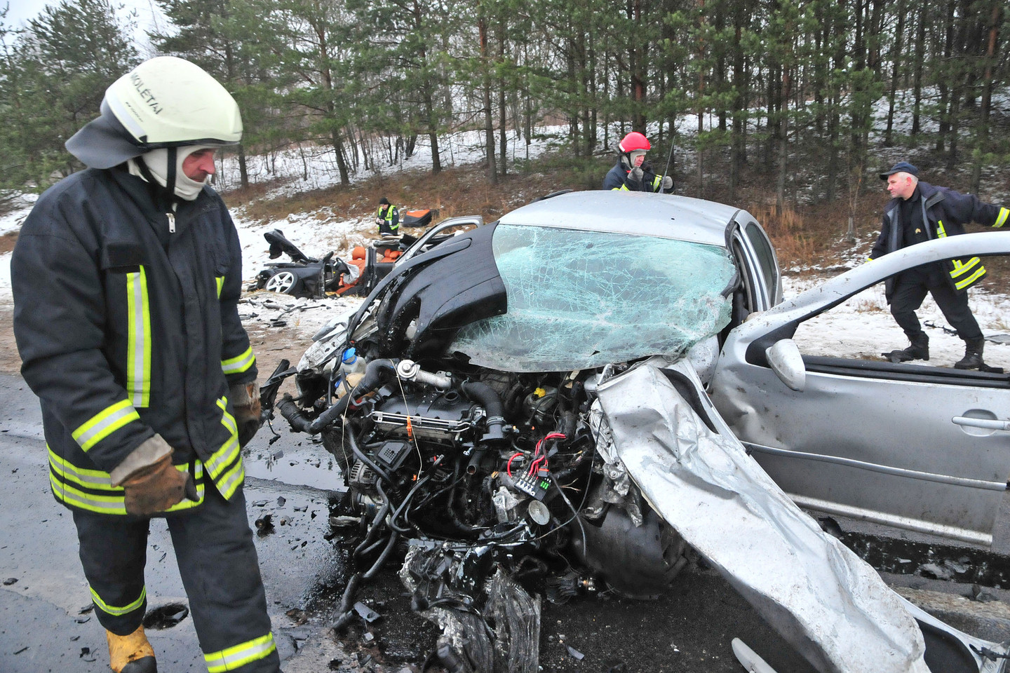 Paaiškėjo, kad automobilio „Volvo“ vairuotojas Justinas S. (gim. 1989 m.) per susidūrimą iš karto žuvo. Jo kūną iš metalo laužo krūvos ištraukę gelbėtojai pradėjo vaduoti greta sėdėjusią keleivę. Kad ją ištrauktų, ugniagesiai turėjo gerokai paplušėti.