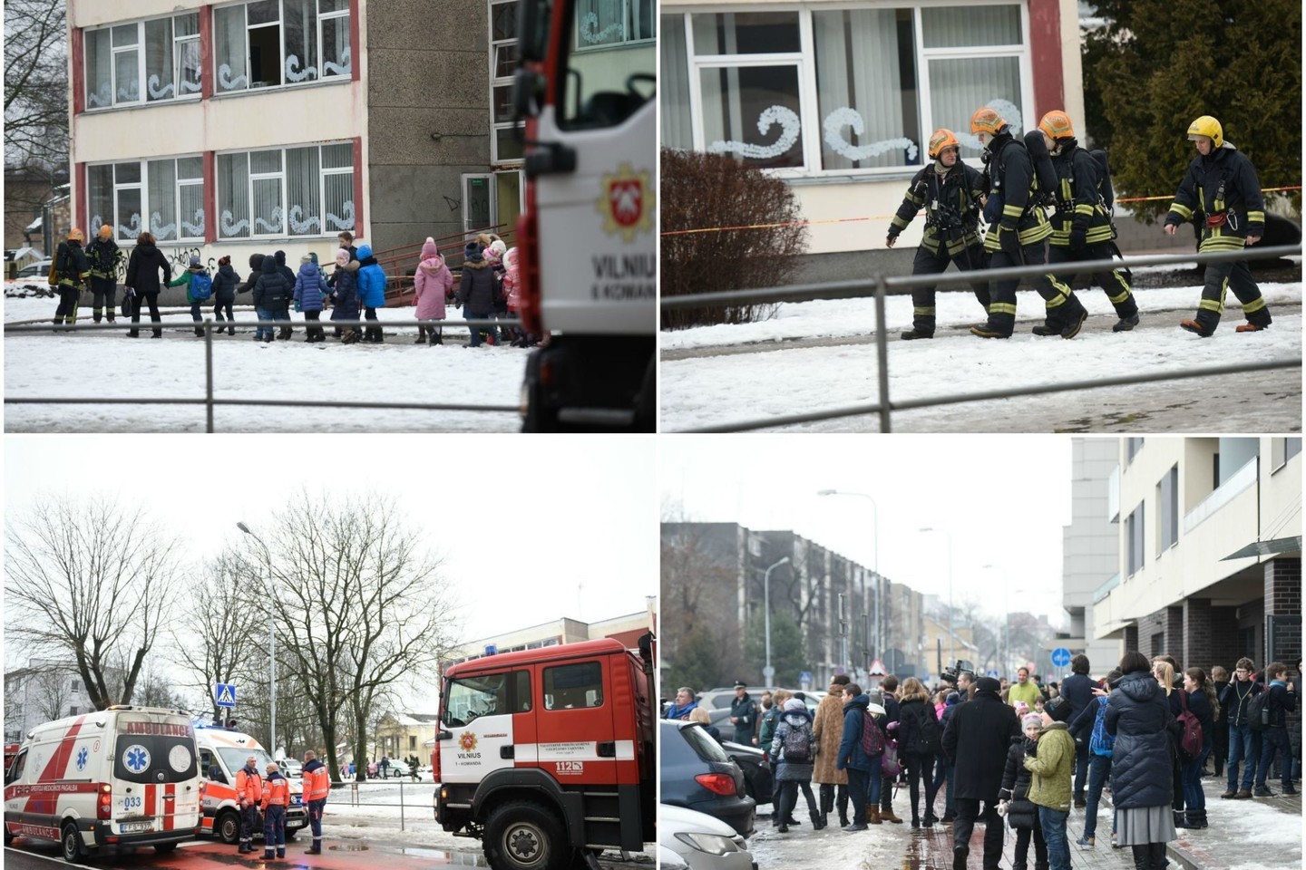 Priešgaisrinės apsaugos ir gelbėjimo departamente lrytas.lt informavo, kad mokykloje dirbo dvi gelbėtojų grandys, evakuojančios moksleivius.