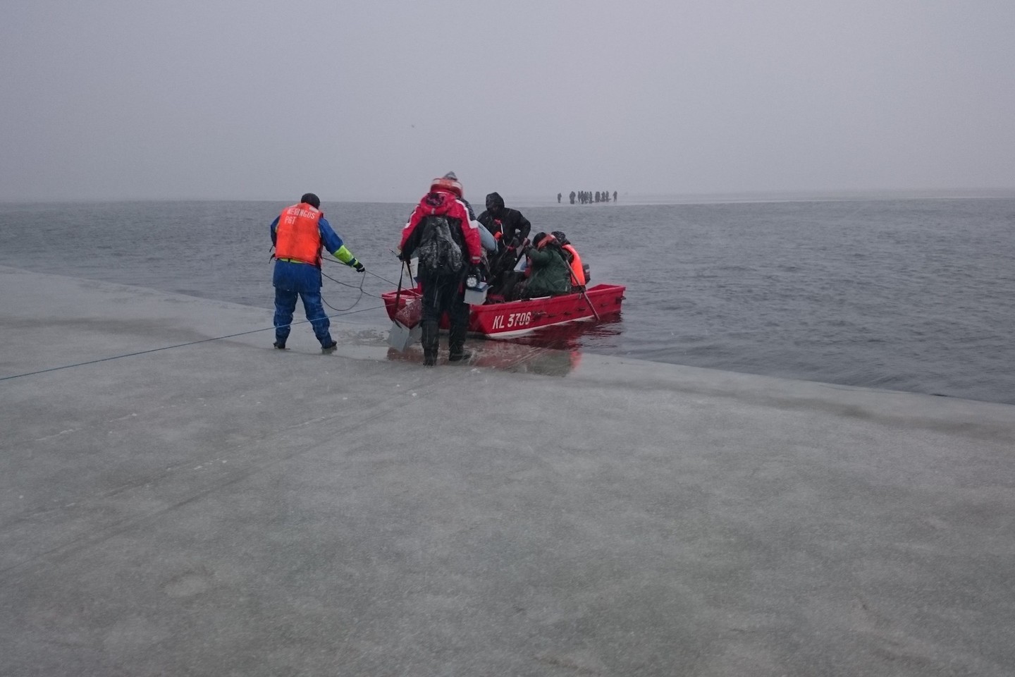„Mūsų žiniomis, ant ledo yra maždaug 150 žvejų. Ledas pajudėjo, susidarė pavojingų properšų – patiems eiti į krantą pernelyg pavojinga. Gelbėjimo operacija gali užtrukti kelias valandas“, apie 10 valandą – pasakojo Karinių jūrų pajėgų atstovas Antanas Brencius.