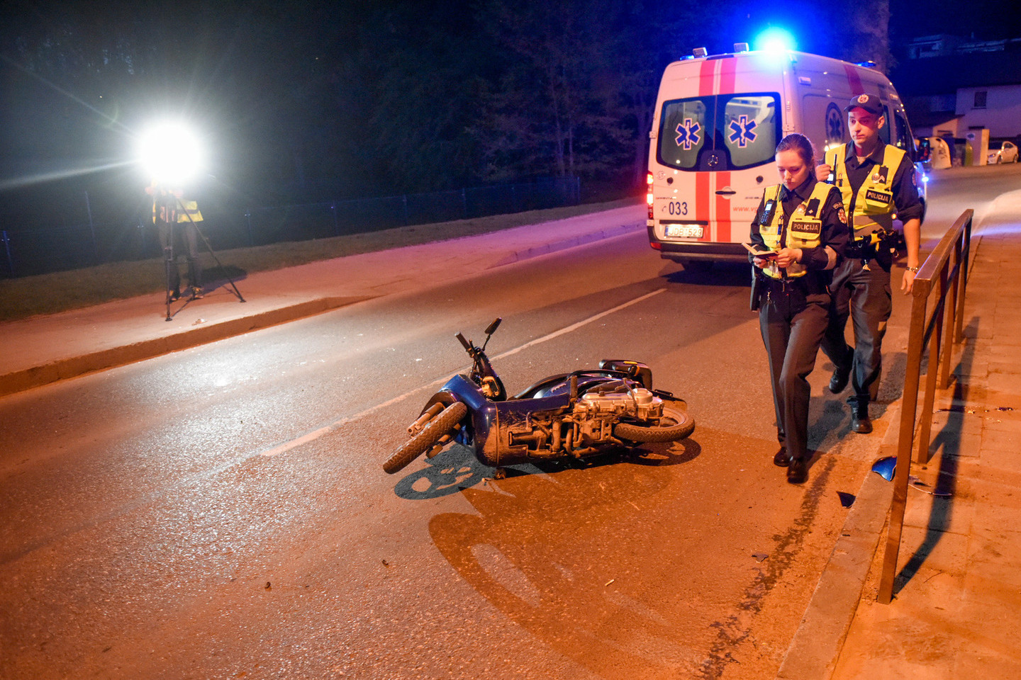 Vilniaus policija pirmadienį pranešė daugiau incidento aplinkybių. Kaip rašoma policijos pranešime, sekmadienį apie 21 val. 34 min. Šilo g., Vilniuje, neblaivus (1,87 prom. alkoholio) mopedo vairuotojas (gim. 1989 m.), nesuvaldė vairuojamo mopedo ir atsitrenkė metalinį atitvarą.