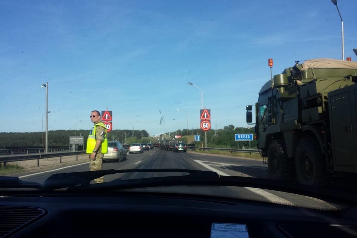 Karinė transporto technika susidūrė, vykstant perdislokavimo pratyboms. Sunkvežimiai važiavo link Vilniaus. Po susidūrimo susidarė transporto spūstys.