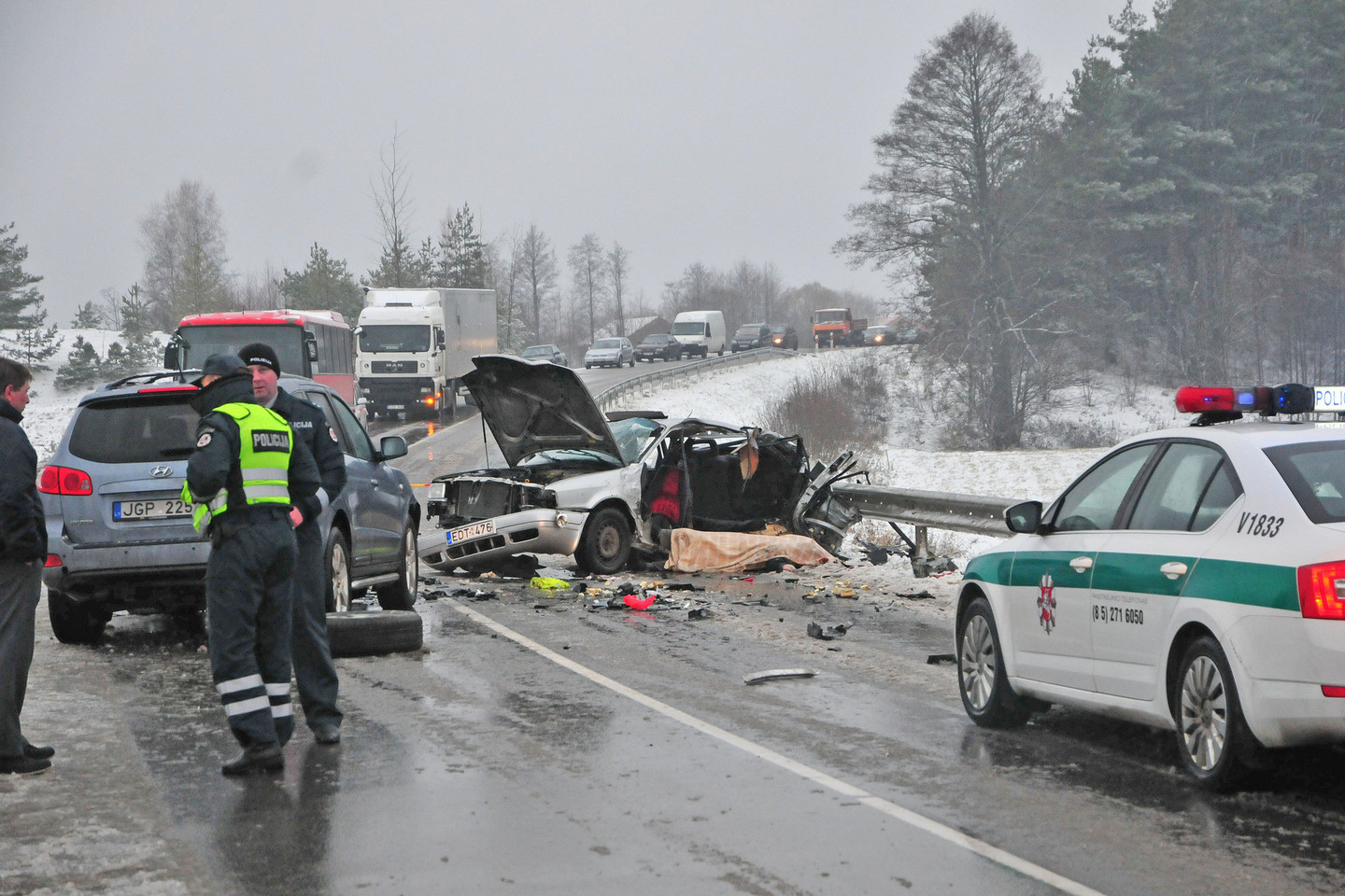 Pirminiais duomenimis, „Audi“ vairuotojas (gim. 1974 m.) nesuvaldė automobilio, kai jį sumėtė dėl slidžios kelio dangos. „Audi“ įvažiavo į priešpriešinio eismo juostą ir kaktomuša rėžėsi į iš priekio atvažiuojantį „Hyundai“.