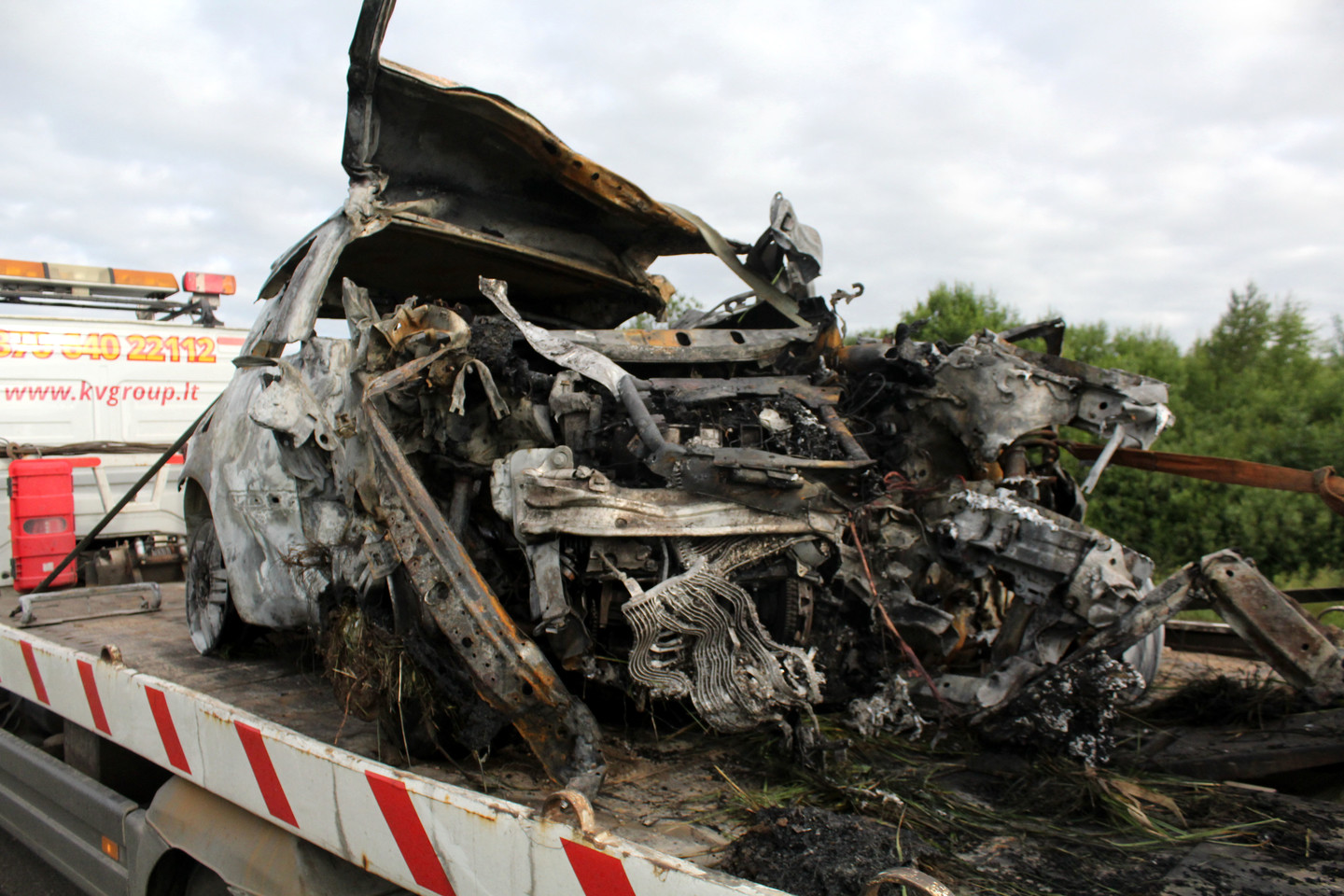 Į įvykio vietą atvykusiems ugniagesiams teko ne tik užgesinti automobilį, bet ir sukarpyti jį dalimis – tik taip pavyko ištraukti žuvusiojo kūną.