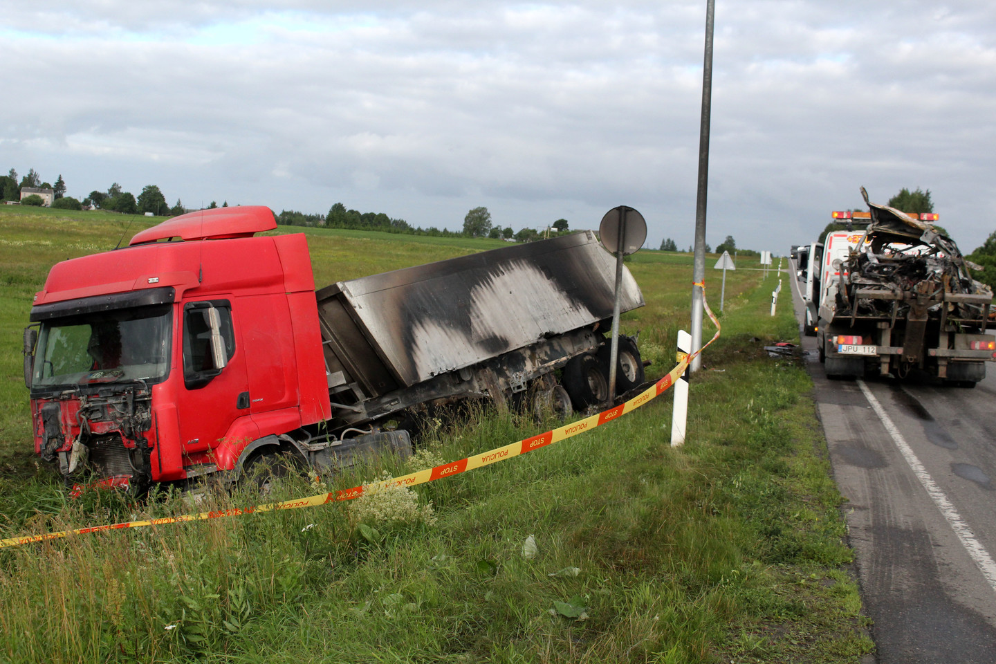 Pasak sunkvežimio vairuotojo, po susidūrimo įvyko sprogimas ir lengvasis automobilis staigiai užsiliepsnojo.