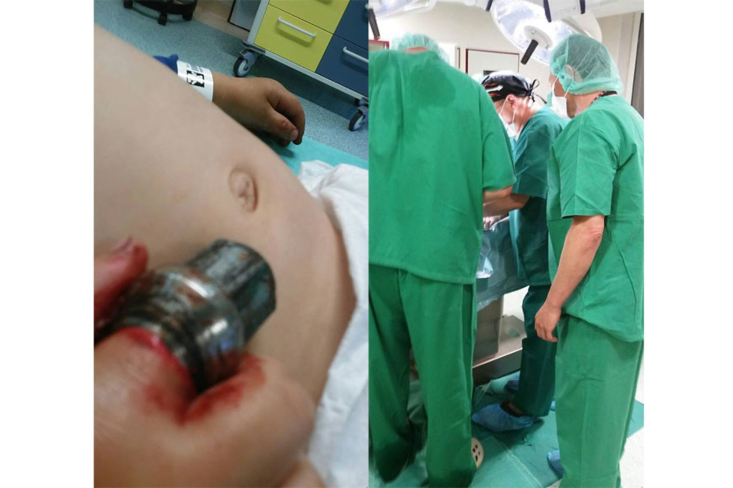 Vilniaus APGV 3-komandos ugniagesiai gelbėtojai L. Barkus ir A. Lysenko daugiau nei valandą kartu su chirurgais šalino nuo dvejų metukų berniuko pirštuko ratlankio veržlę. Panaudojus kampinį šlifuoklį veržlė buvo nupjauta ir nuimta.