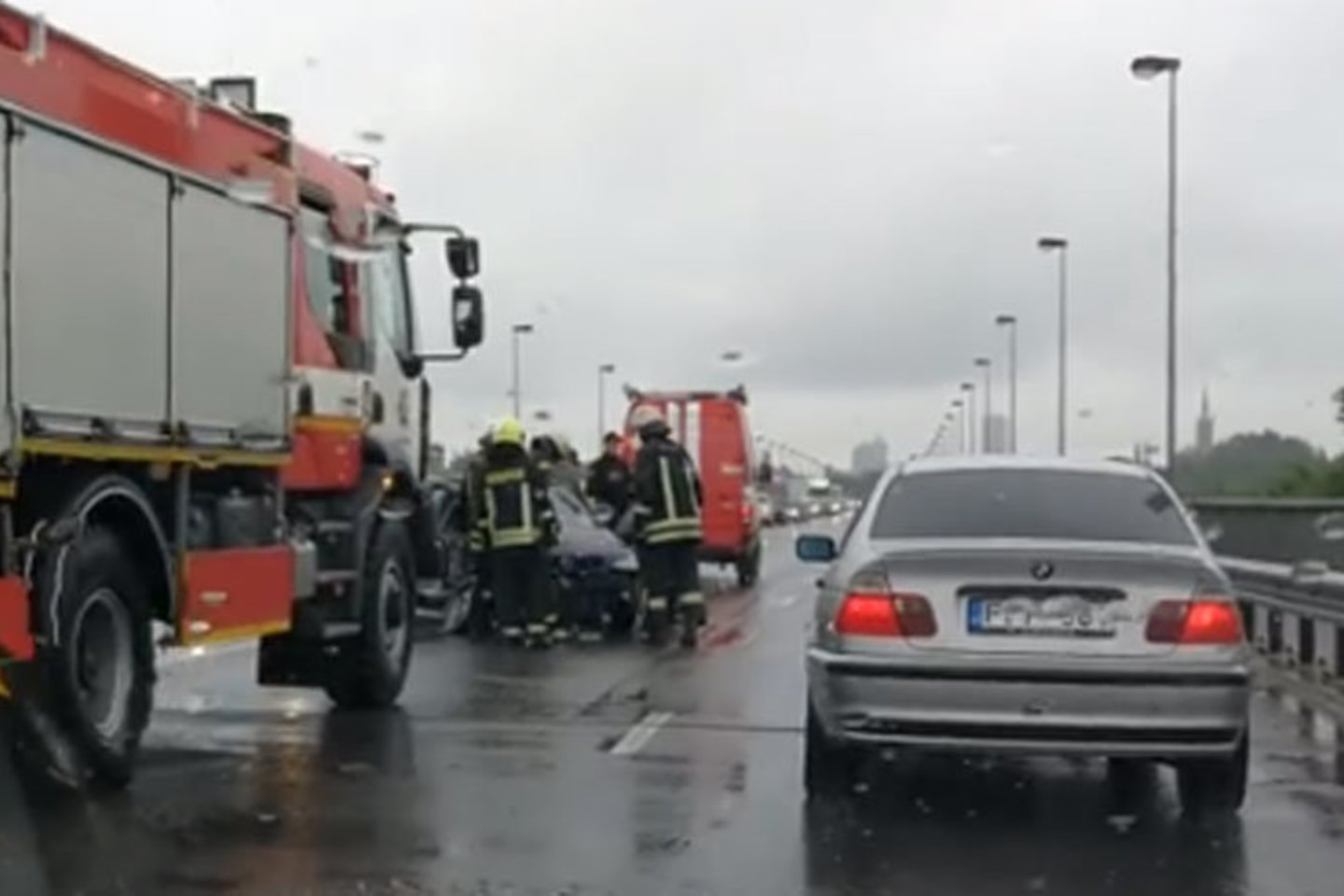Avarija įvyko lyjant lietui. Dėl incidento iš karto susidarė transporto grūstys.