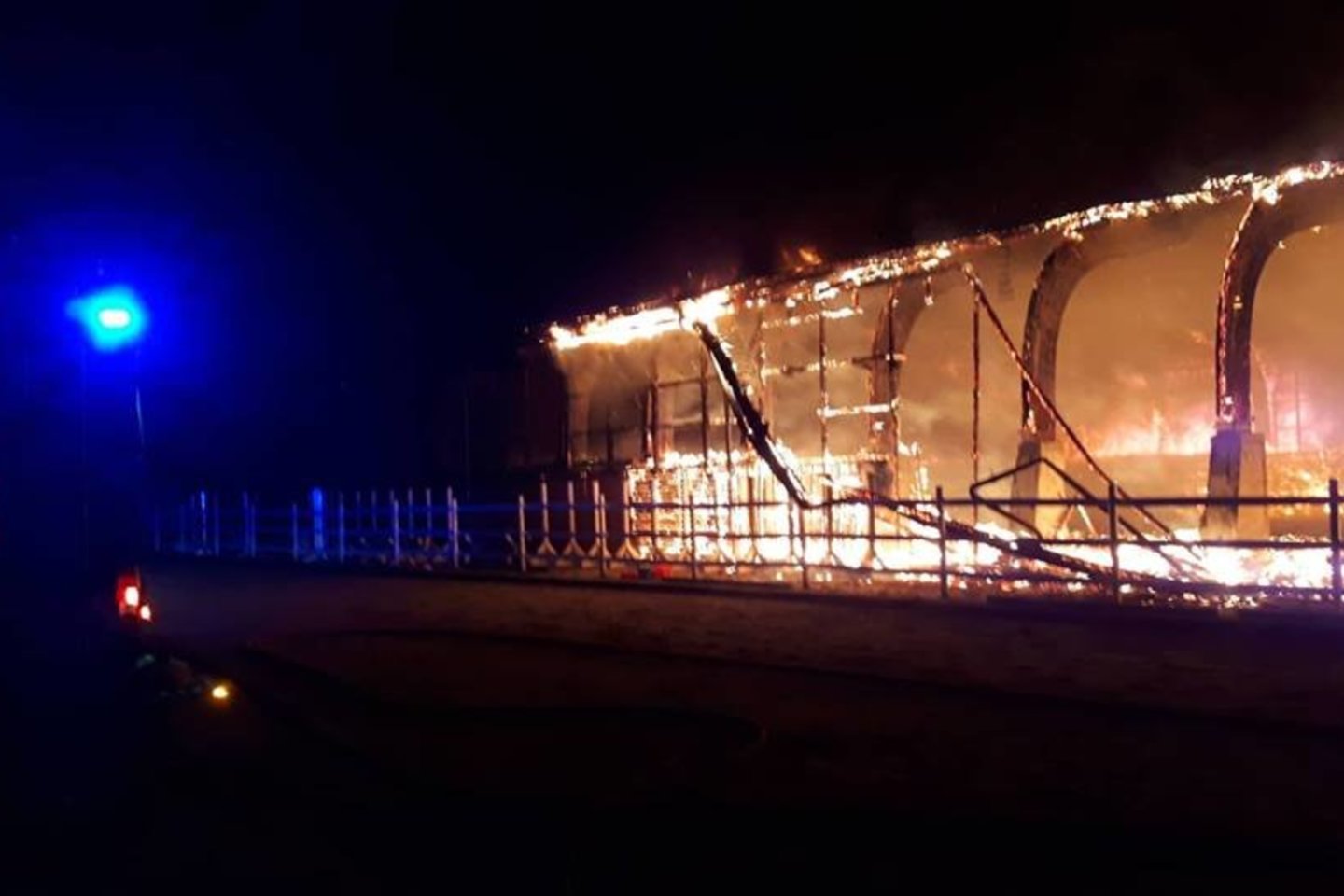 Vilniaus apskrities policijos atstovai pranešė, kad sudegė arklidžių maniežas kartu su firmine parduotuve, žirgai nenukentėjo, juos spėta išleisti į ganyklą.