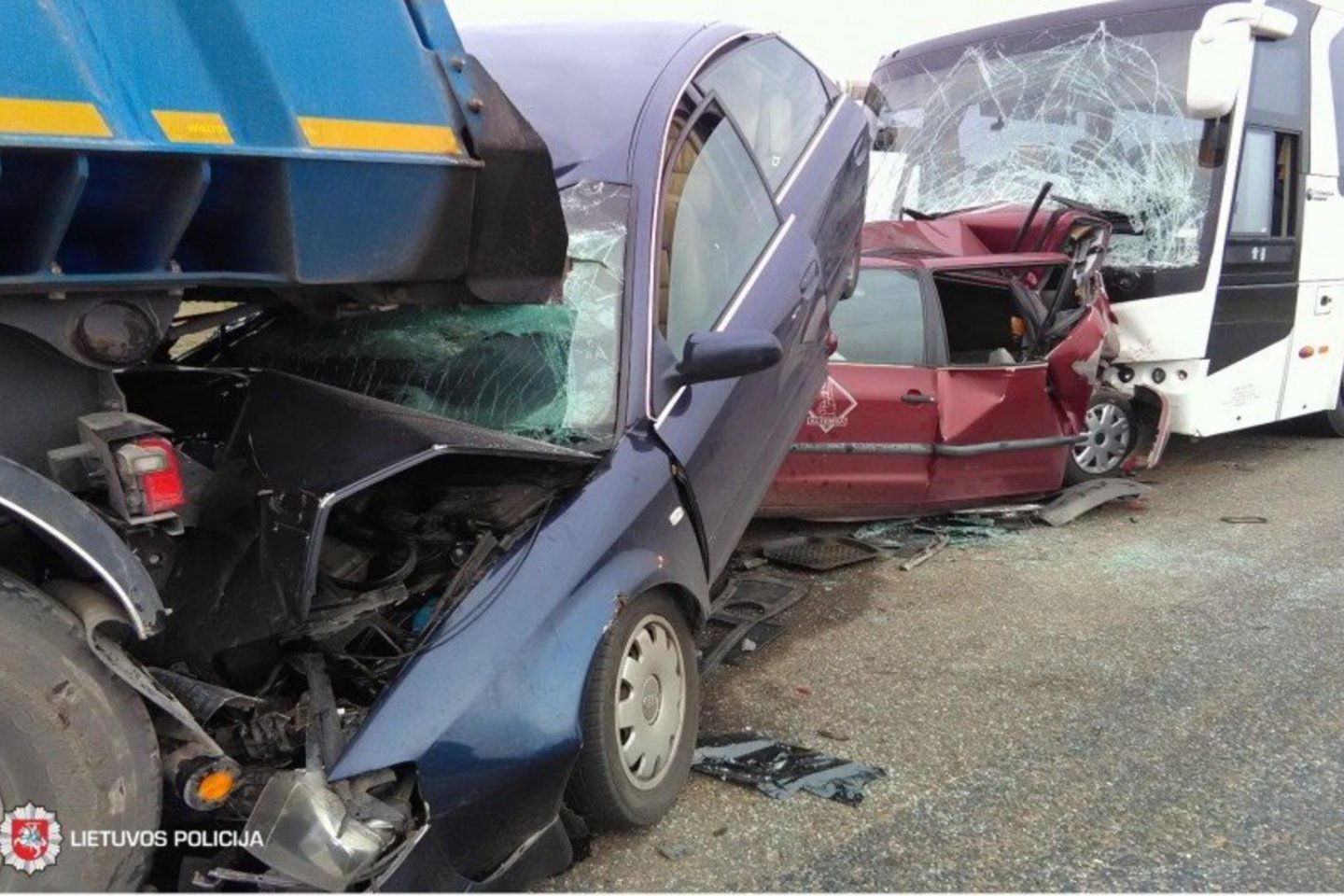Pavakarę (apie 17 val. 39 min.) Kelmės rajone, Šaltenių kaime, kelyje Verpena–Šalteniai–Ramučiai, esant šlapiai kelio dangai ir rūkui, 29 metų vyras, vairuodamas automobilį BMW X5 3.0D ir prieš lenkdamas krovininį automobilį, neįsitikino, kad tai daryti saugu, įvažiavo į priešpriešinio eismo juostą, kur susidūrė su automobiliu „Renault Mégane Scénic“, vairuojamu 32 metų vyro.