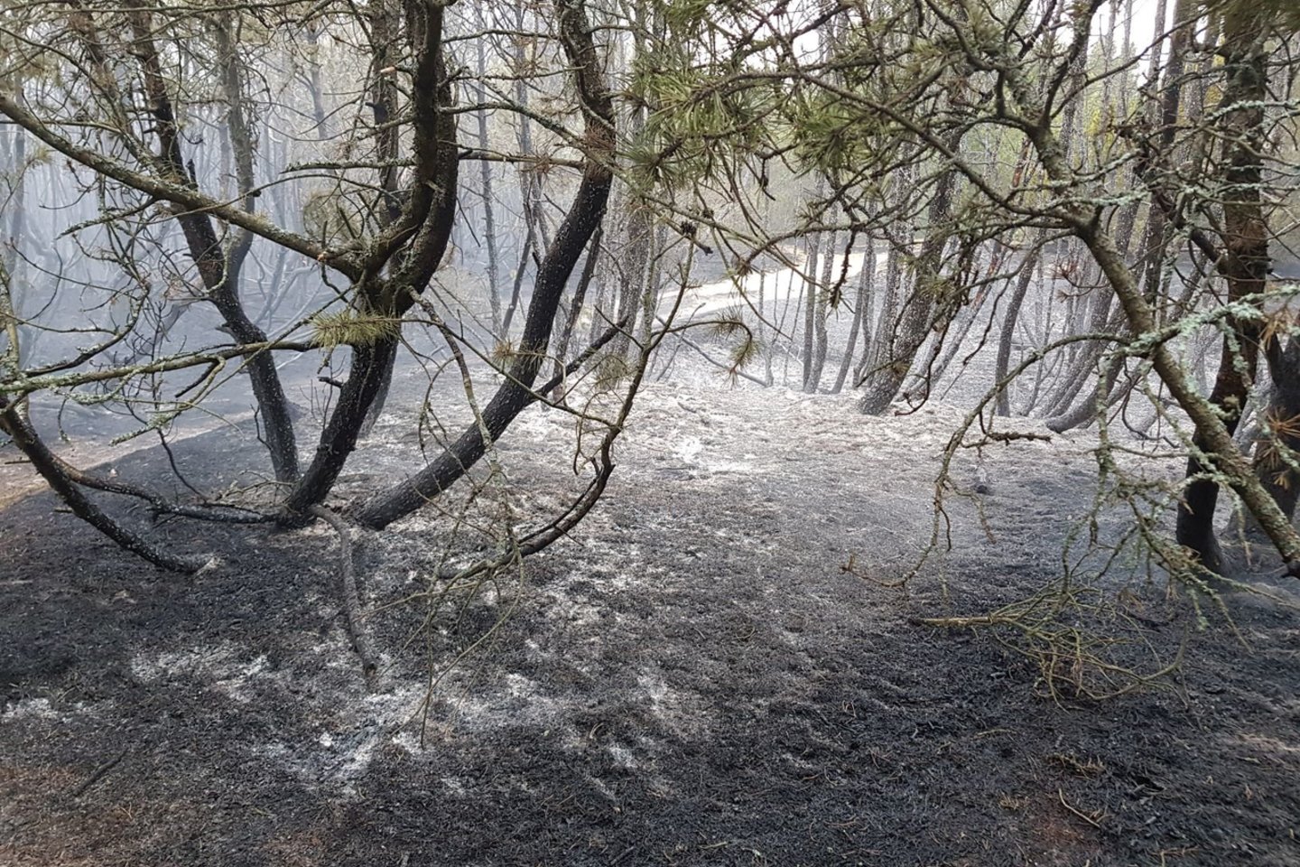 Užsidegė kalninės pušies miškas. Gaisras buvo užgesintas mažiau kaip per dvi valandas, tačiau ugnis spėjo sunaikinti pusantro hektaro miško, nes kalninė pušis yra labai degi“, – pasakojo Valstybinių miškų urėdijos Kretingos regioninio padalinio miško auginimo specialistė Gražina Banienė.