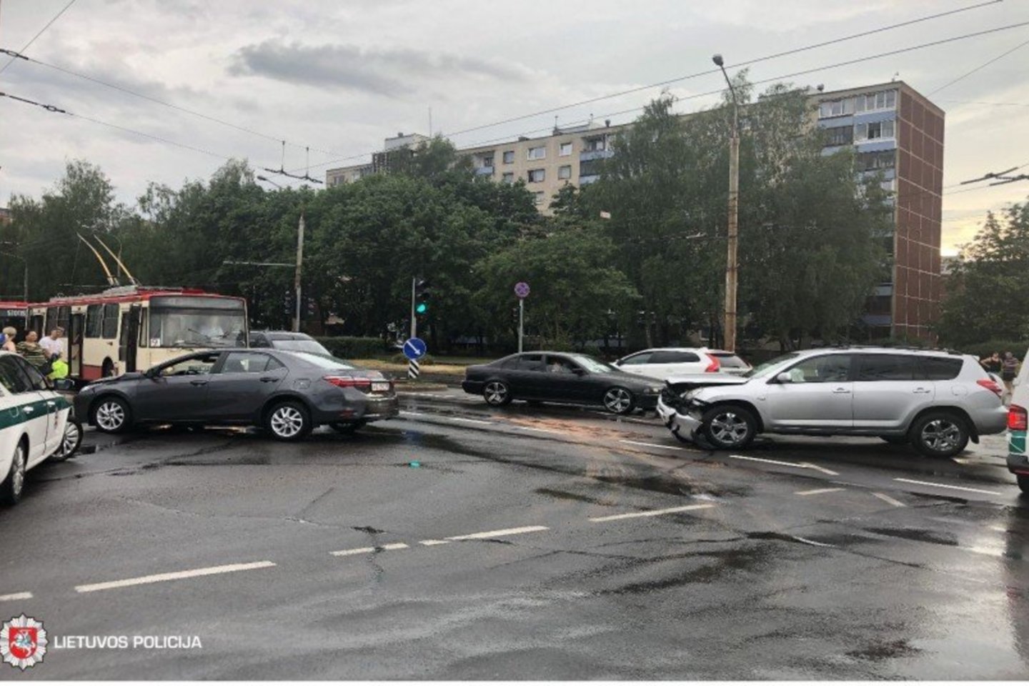 Esant šlapiai kelio dangai – 5 įvykiai. Vilniuje, pirminiais duomenimis, įvyko 5 eismo įvykiai, Kaune – 1 (nukentėjo 60 metų miesto maršrutinio autobuso keleivė).