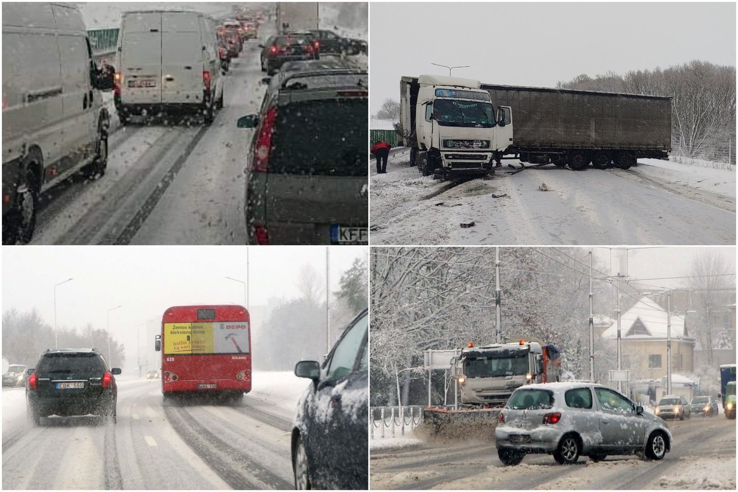 Eismo dalyviai dalijosi nuotraukomis iš kelio Kaunas-Vilnius – netoli Vievio, kituose ruožuose nusidriekė didžiulės spūstys.