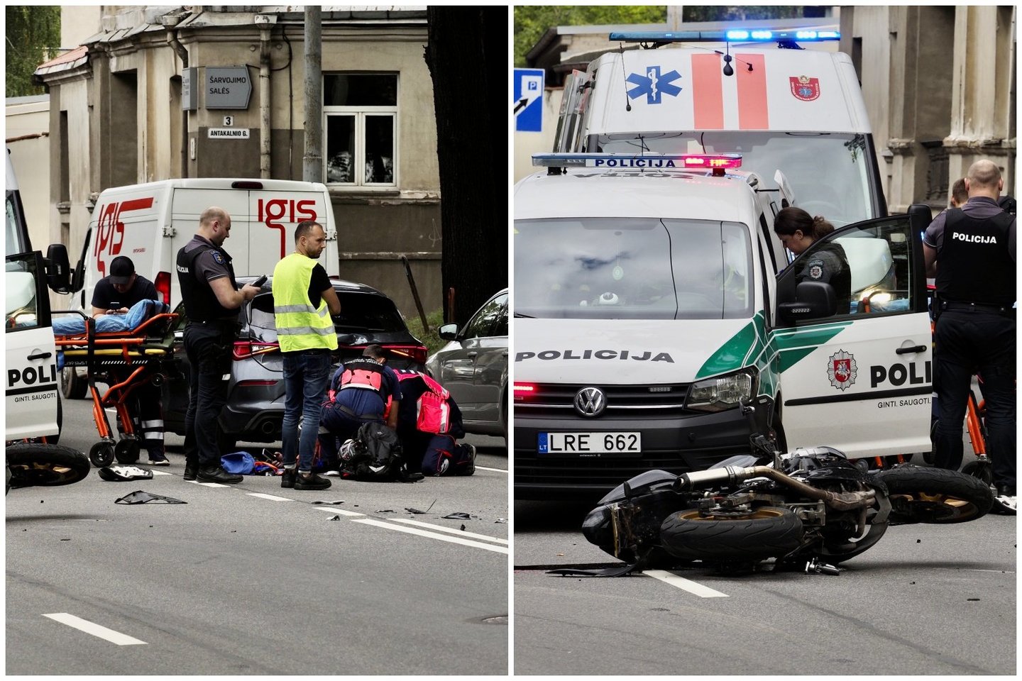 Visų pirma apie 14 val. 26 min. buvo pranešta, kad Žirnių g. motociklas trenkėsi į lengvąjį automobilį. Pasak pranešimo, motociklininkas patyrė kojos traumą.