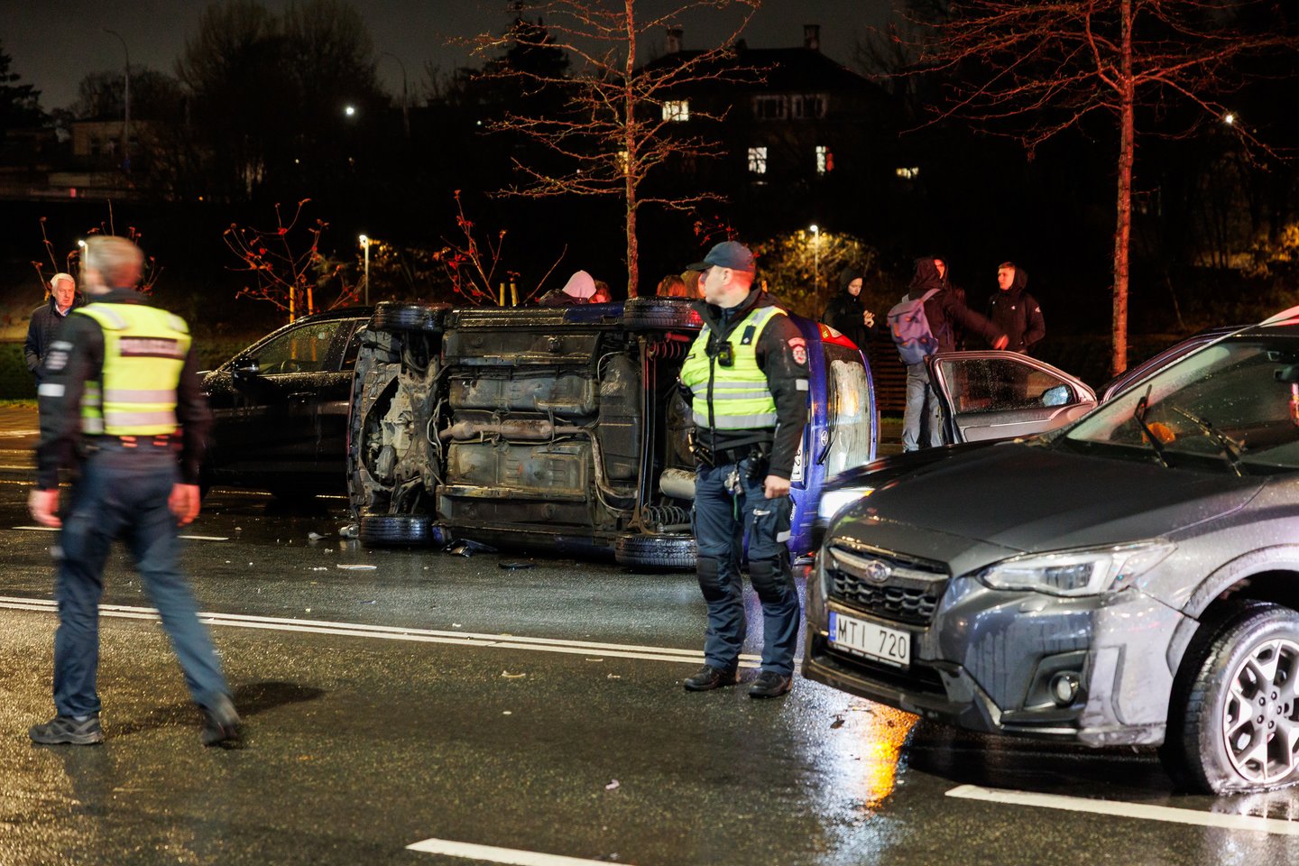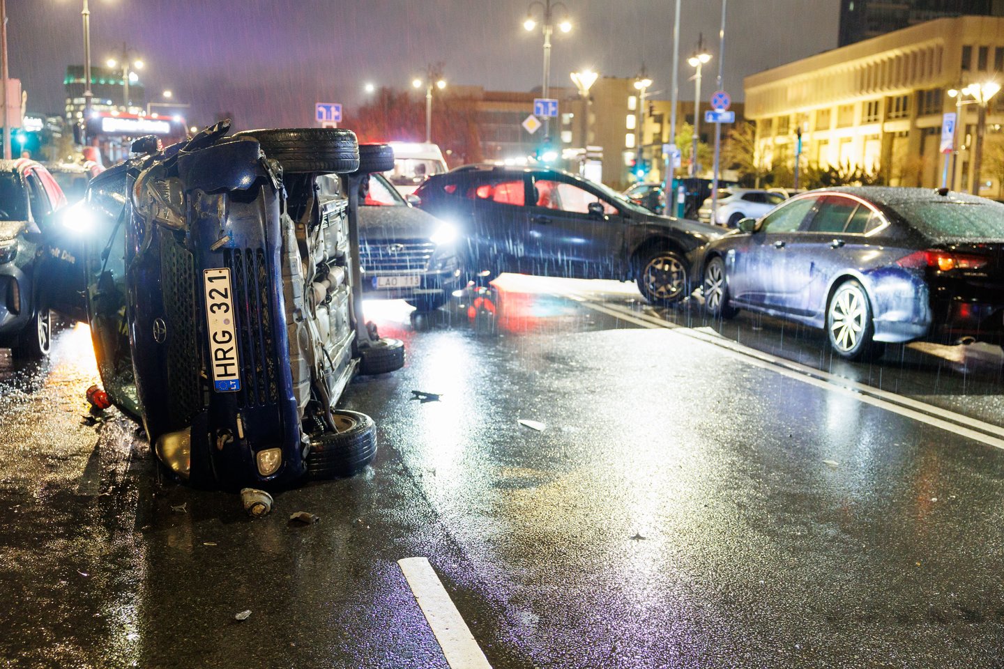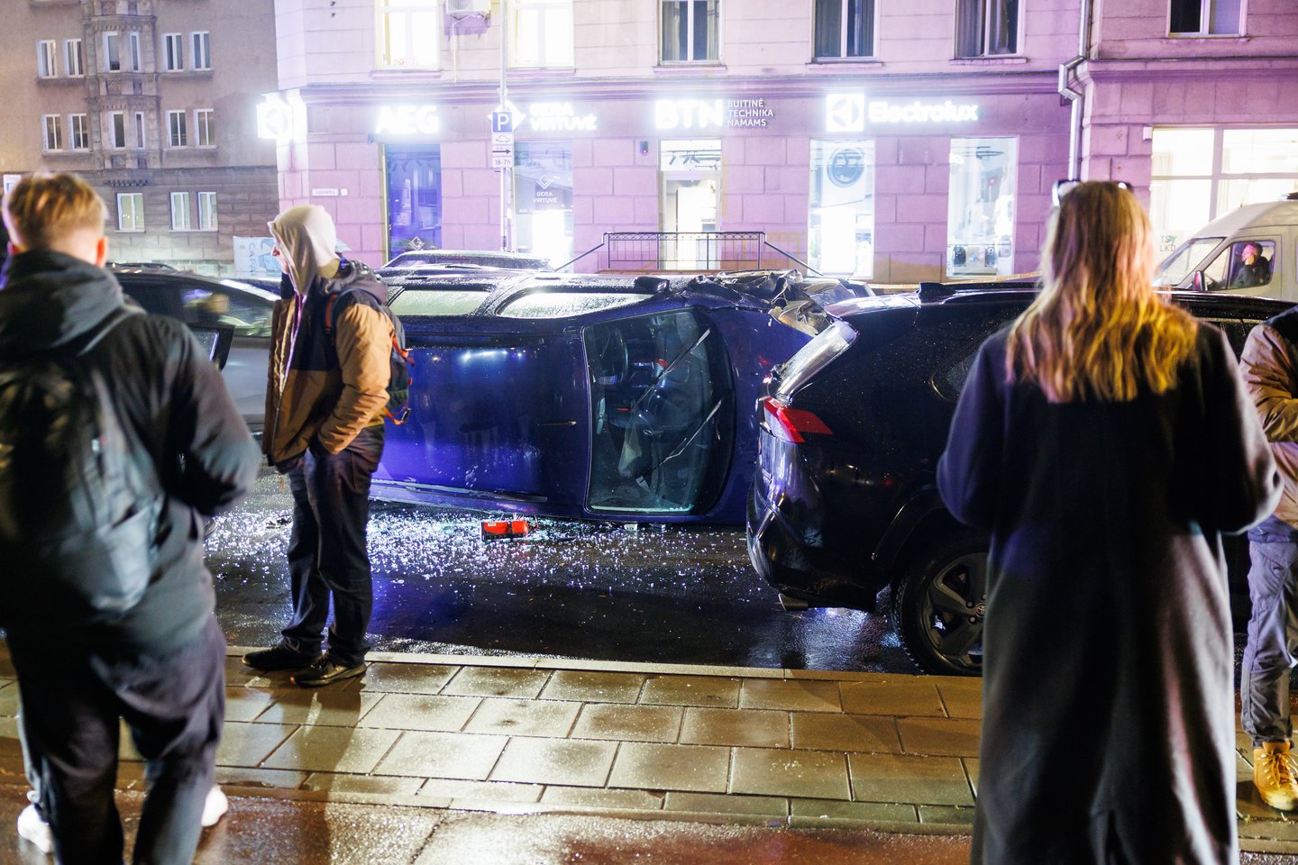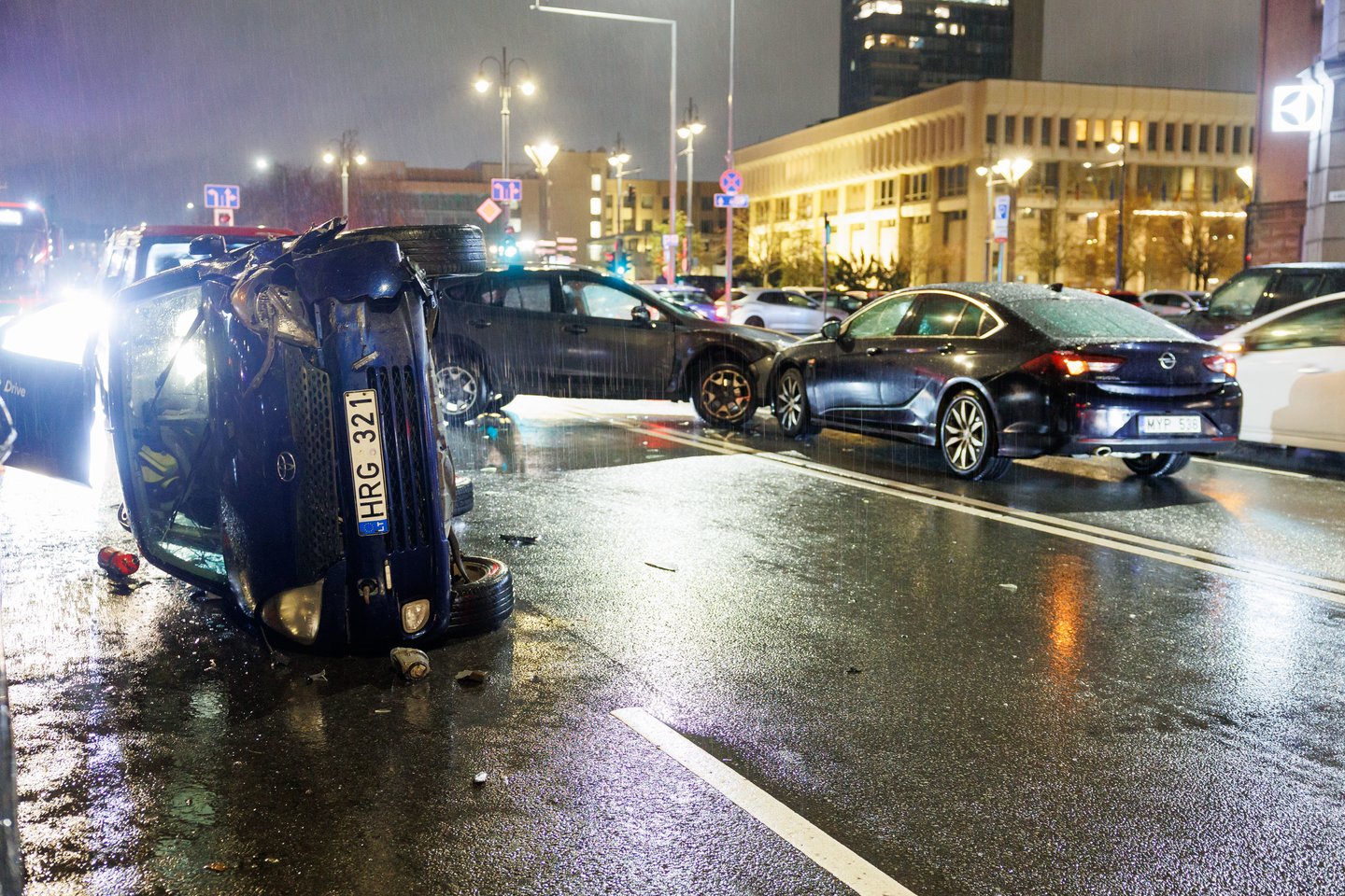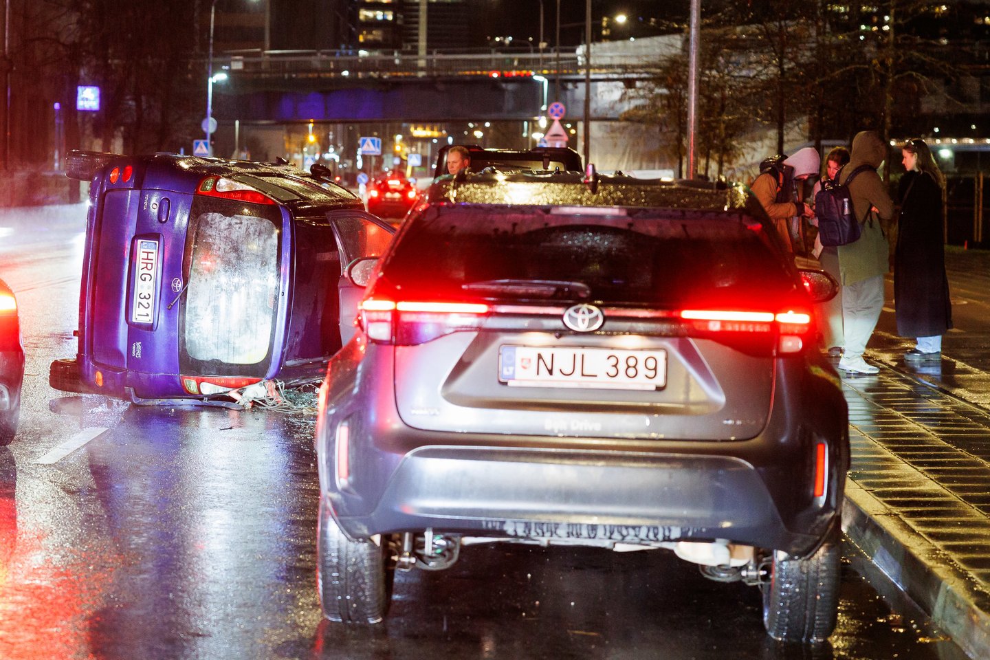 Vienas žmogus nesunkiai nukentėjo pirmadienio vakarą Vilniaus centre susidūrus penkiems automobiliams. Per susidūrimą ties Gedimino pr. ir A.Goštauto g. sankirta vienas automobilis apvirto. Avarija įvyko smarkiai lyjant. Dėl įvykio aplinkinėse gatvėse kuriam laikui susidarė spūstys.