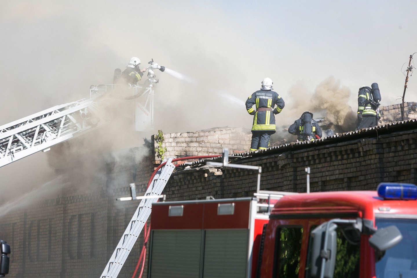 Įvykio vietoje dirbo šešios autocisternos, trys autokopėčios bei kita specialioji ugniagesių technika.