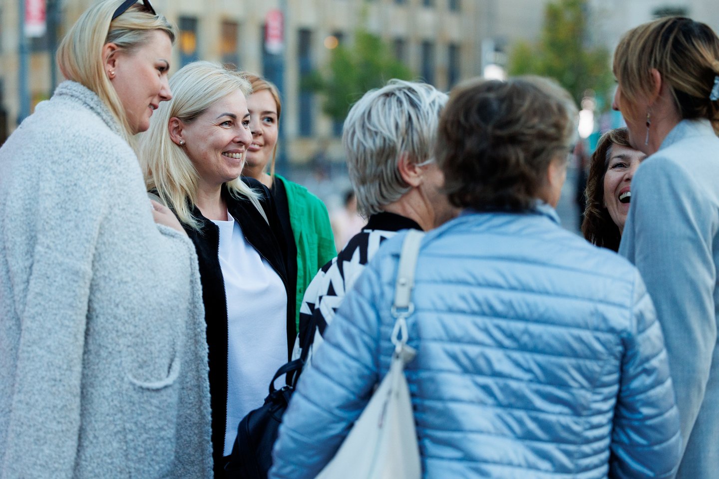 Šalia Vyriausybės rūmų prieš vidurdienį vėl susibūrė gausus būrys mokytojų. Čia skambėjo jų kalbos, dainos ir diskusijos. Kiek po 13 valandos buvo paskelbta pertrauka, tad į mitingo vietą pedagogai sugrįš jau vakarop. Visgi, būrelis mokytojų liko V.Kudirkos aikštėje, čia fotografavosi, dalijosi įspūdžiais.