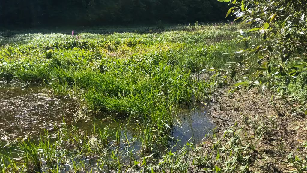 Prie vienos iš pelkių tyloje praleidę daugiau nei valandą, kartu su fotografu pastebėjome virš vandens tarp augalų kyšančią galvą.