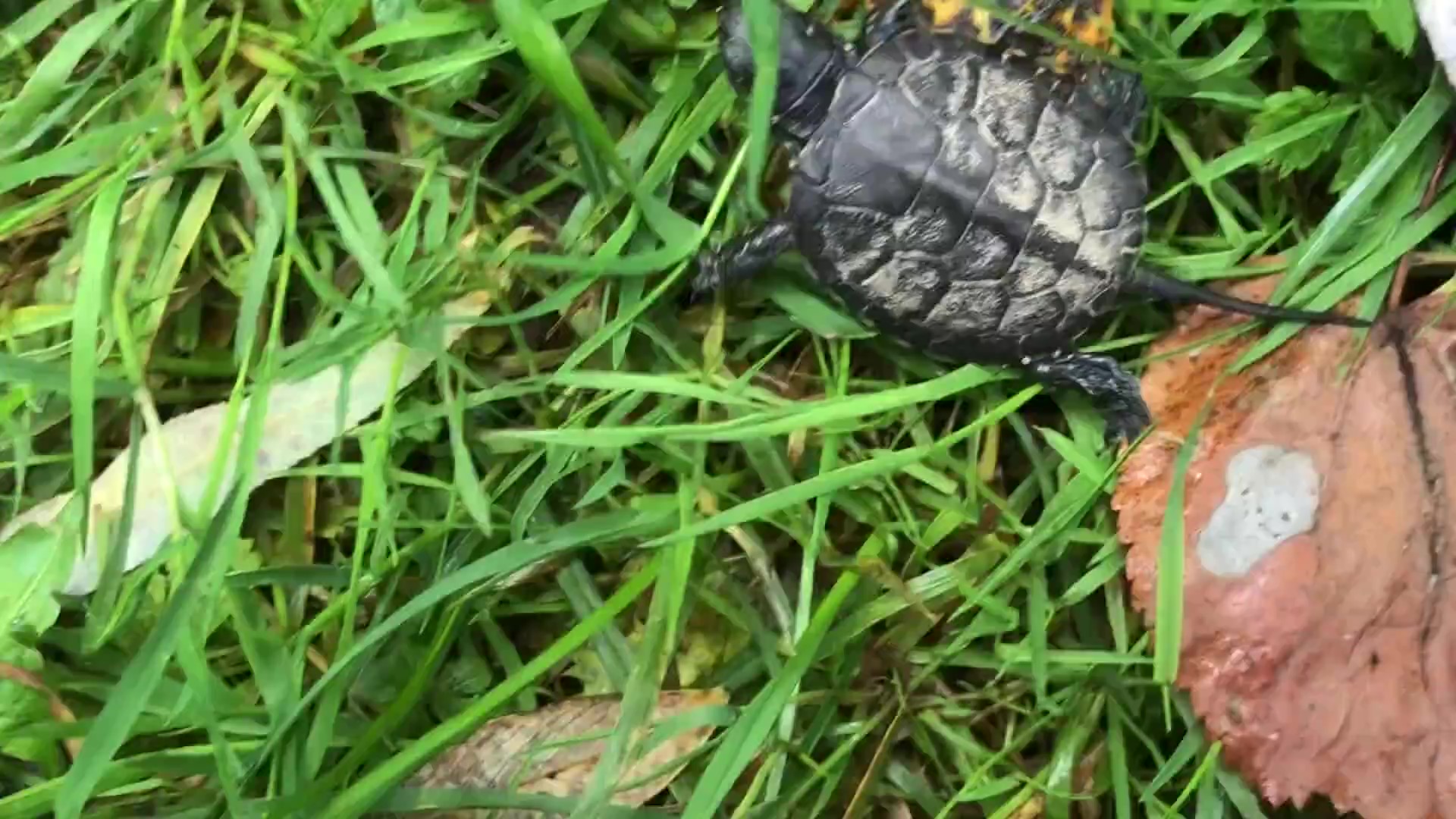 Lėtai užsiropštęs ant salelės, vėžlys ėmė šildytis besibaigiančios vasaros spinduliuose. Gerai įkaitinęs kiautą ir atgavęs judrumą, vėžlys pliumptelėjo vandenin.