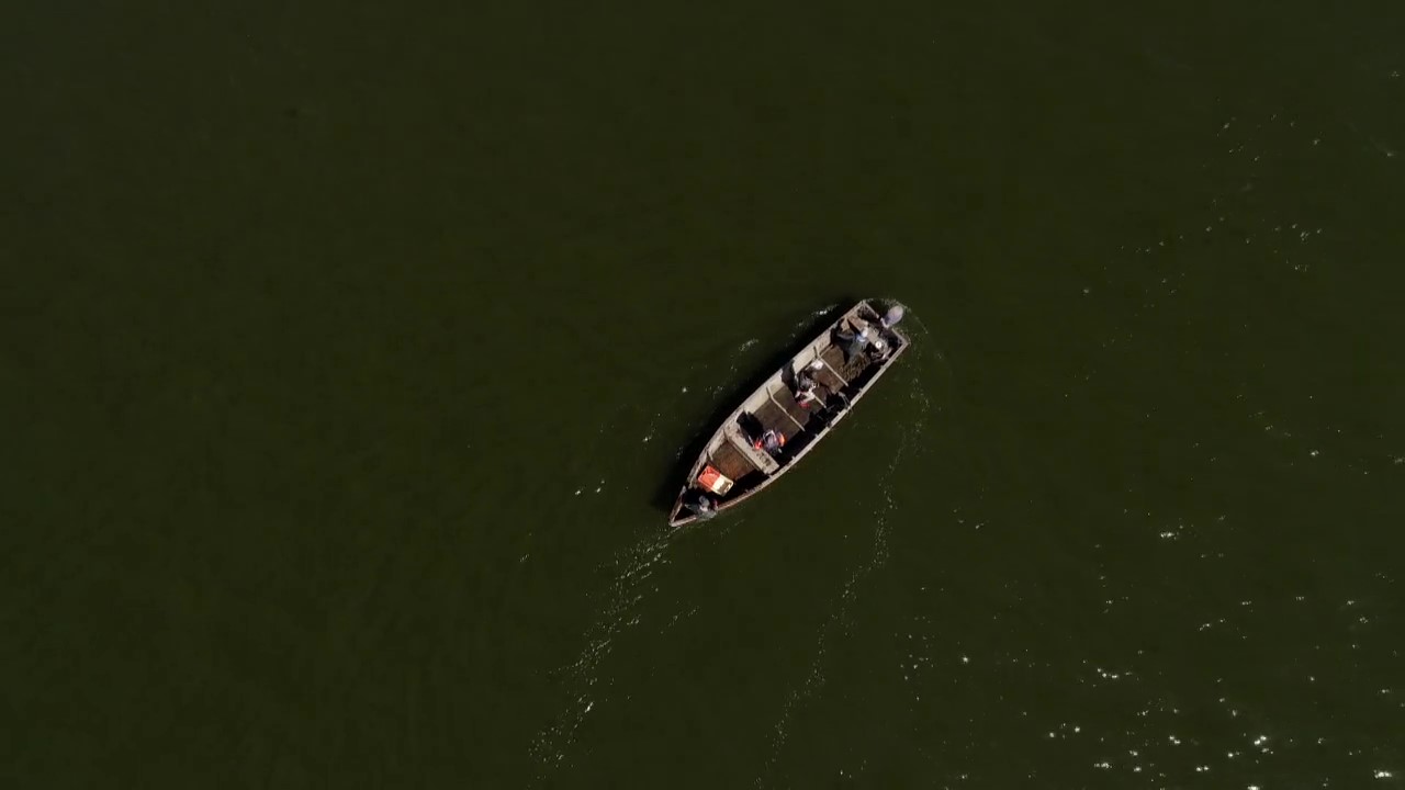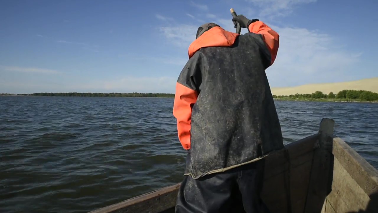 Tolyn nuo molingo kranto Audrius ją plukdo atbulomis ir kartu tempia virvėmis pririštą plastikinę. Joje – Dalius ir Giedrius, apsirengę neperšlampama žvejų apranga, matuoja marių gylį ir ieško tinkamiausios vietos gaudyklei.