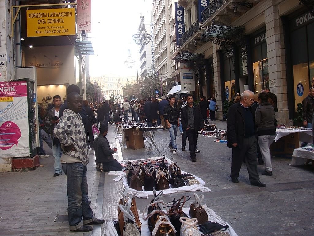 Seniai jokia paslaptis, kad ne tik Atėnų širdyje Ermou gatvėje, Monastyrakio aikštėje ar antikinėje Agoroje, bet ir dešimtyse kitų aikščių bei gatvių savaitgaliais, užsidarius parduotuvėms, vyksta gausi ir dažniausiai nelegali prekyba padirbiniais. Tiesa, tiek vietiniams gyventojams, tiek turistams ji labai palanki.