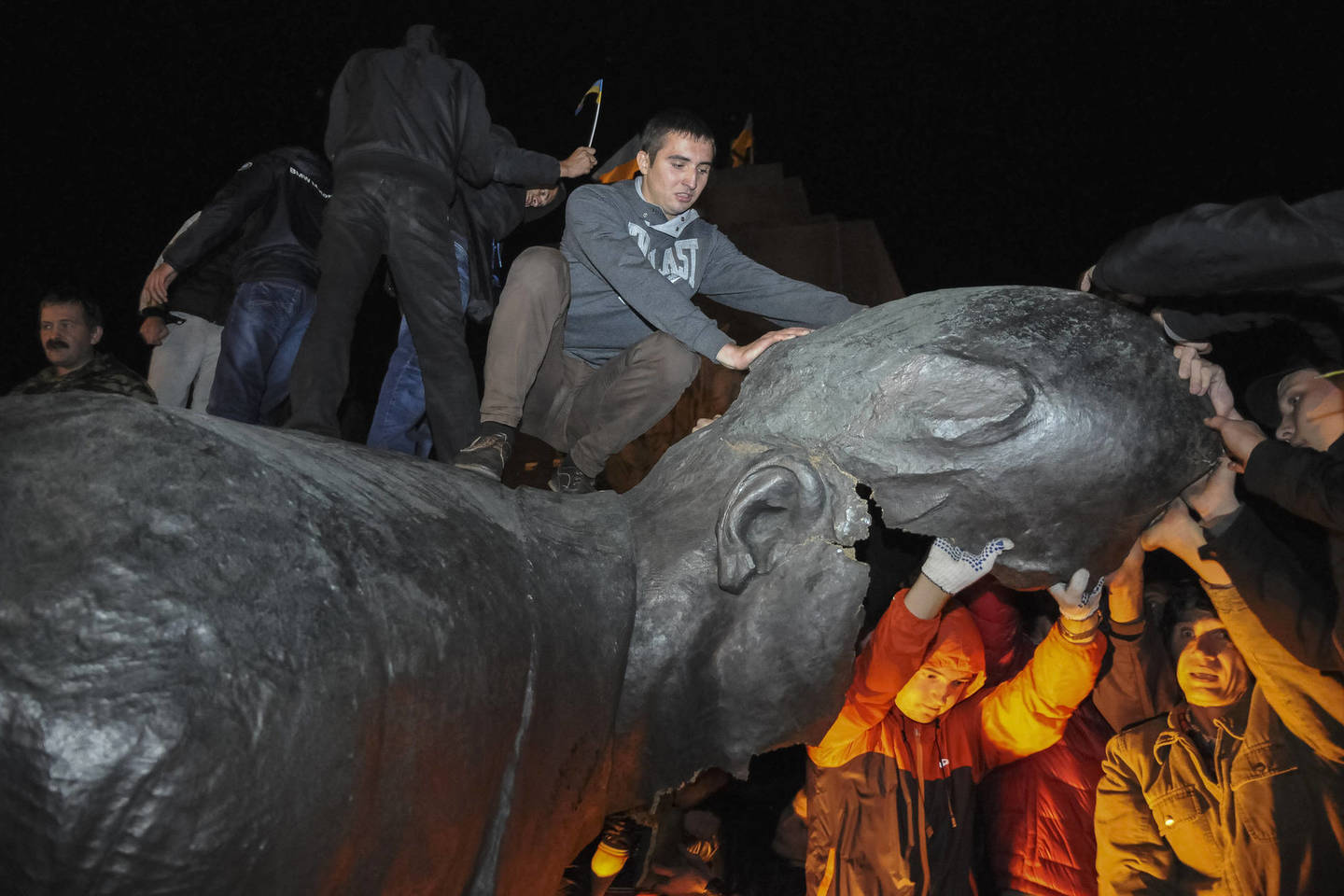 Vasario 20 dieną Kijeve įvyko žiauriausias smurto protrūkis per 70 metų, kai snaiperiai ėmė šaudyti į protestuotojus. Vasario 22 dieną V.Janukovyčius dingo, įaudrinti Maidano gynėjai įsiveržė į prezidento rezidenciją, opozicijos veikėja Julija Tymošenko atgavo laisvę. Duomenys rodo, kad tada per vieną dieną kovotojai už Ukrainos nepriklausomybę nuvertė daugiau negu 90 Lenino paminklų. Sovietiniai stabai griuvo visoje šalyje, o aktyvistai sėkmingų operacijų nuotraukas kėlė į internetą. Reiškinio mastas stulbino ne tik Ukrainoje dirbančius užsienio diplomatus: nuverstų sovietinių paminklų skaičiai lyg termometro laipsniai rodė, kiek įkaitinta ir įaudrinta visuomenė.