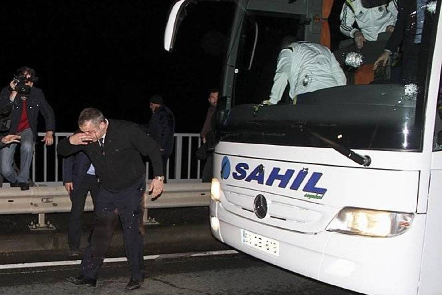 rungtynių netoliese esančioje Rizėje, į autobusą buvo paleisti
