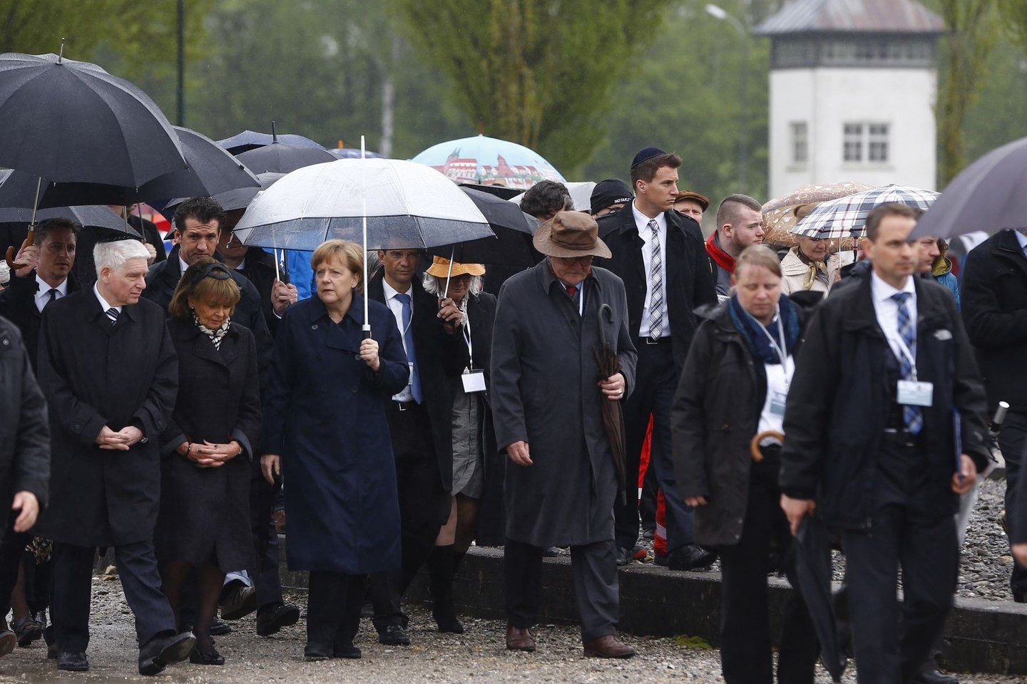A.Merkel ir ir buvęs prancūzų kalinys Clement'as Quentinas, kuris nepaisydamas silpnos savo sveikatos grįžo į Dachau dalyvauti ceremonijoje, padėjo gėlių vainiką prie