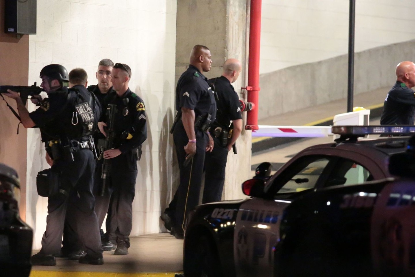 Dalaso policija vykdė derybas su ketvirtu įtariamuoju, kuris slėpėsi automobilių stovėjimo garaže ir daugiau nei valandą šaudė į jį apsupusius pareigūnus.