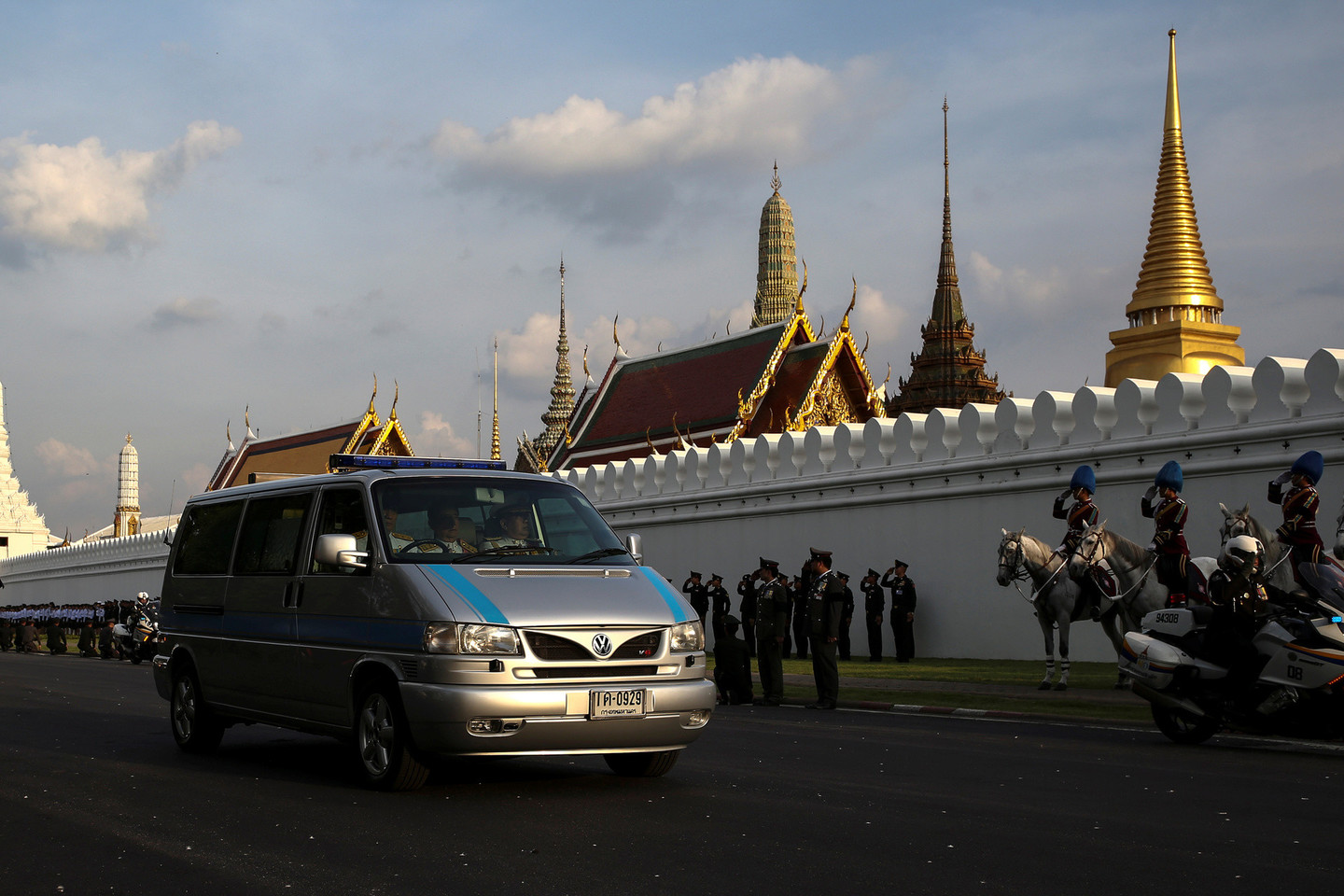 kuriame sėdėjo sosto įpėdinis princas Maha Vajiralongkornas ir jo sesuo Maha Chakri Sirindhorn. Pakeliui kortežas pervažiavo didingąją Čau Prajos