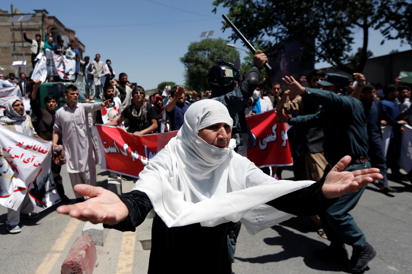 Demonstrantai, skandavę prieš vyriausybę nukreiptus šūkius bei „Mirtis Talibanui“, susirinko netoli tos vietos, kur trečiadienio rytą nugriaudėjo sprogimas. Kadangi keli protestuotojai bandė prasiveržti pro saugumo pajėgas, pareigūnai buvo priversti išvaikyti susirinkusiuosius šaudydami į orą ir paleisdami vandens patranką.