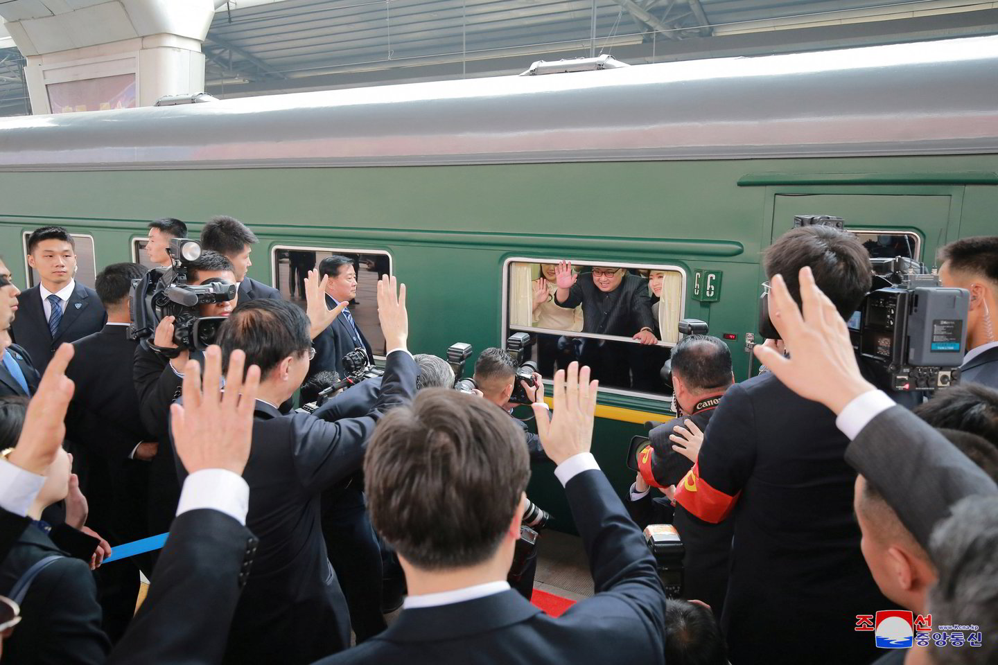 Japonų transliuotojas „Nippon TV“ parodė reportažą, kuriame matyti į Pekino geležinkelio stotį atvažiuojantis traukinys, panašus į naudotą Kim Jong-uno velionio tėvo Kim Jong-ilo.