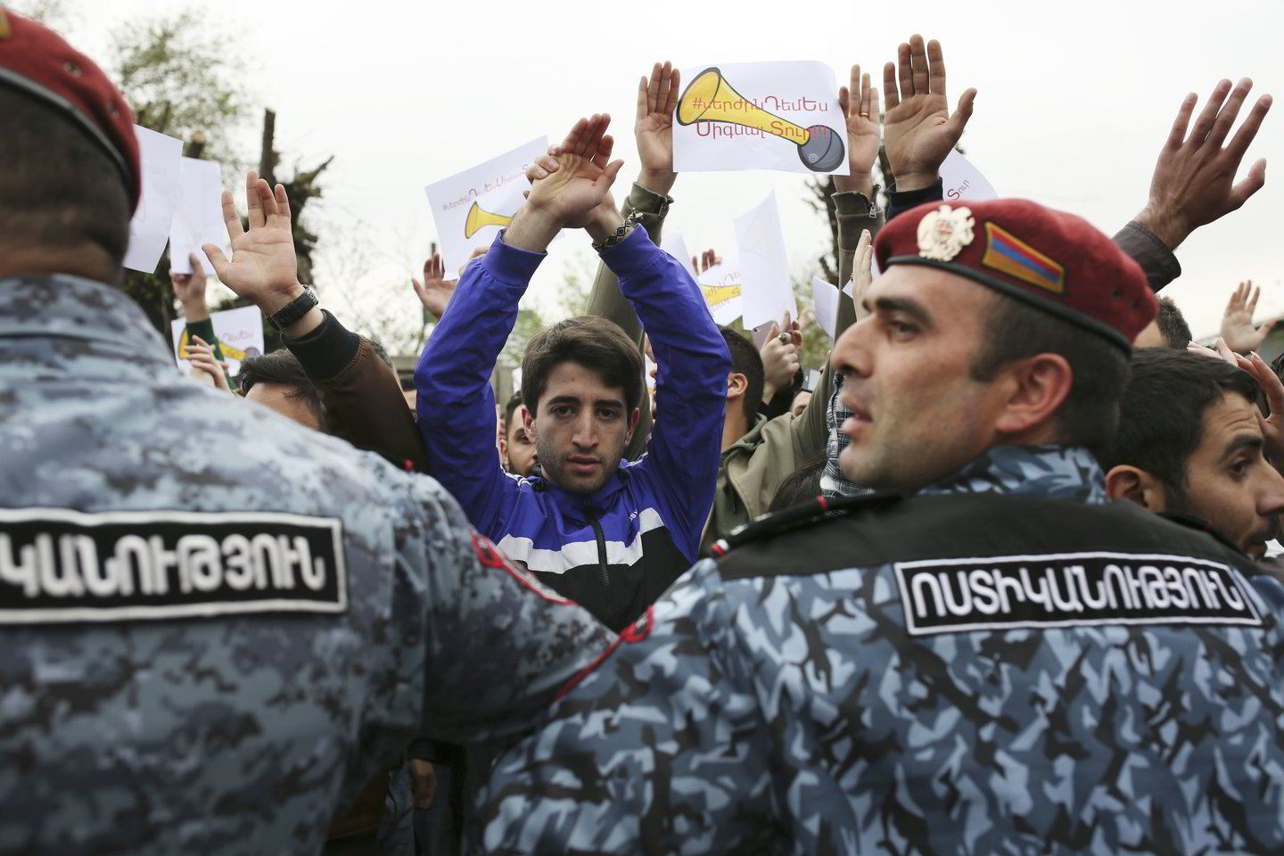 Tūkstančiai demonstrantų šeštadienį išėjo į Jeravano gatvės pareikalauti premjero Seržo Sargsiano atsistatydinimo.