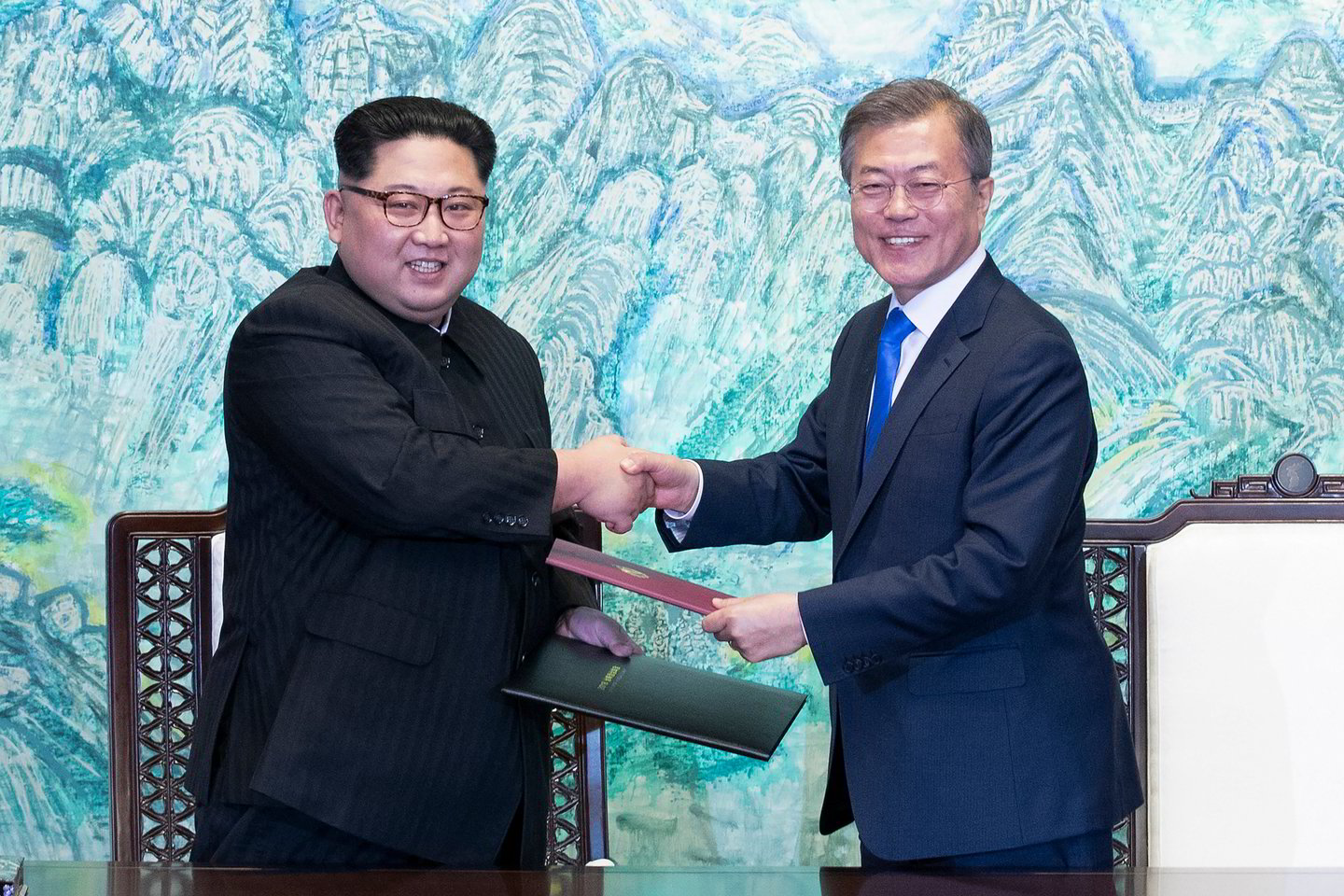 Tačiau įvyko didžiulis diplomatinis pasikeitimas ir Kim Jong Unas su Moon Jae-inu pažadėjo siekti denuklearizacijos bei oficialaus 1950-1953 metų Korėjos karo užbaigimo taikos sutartimi.