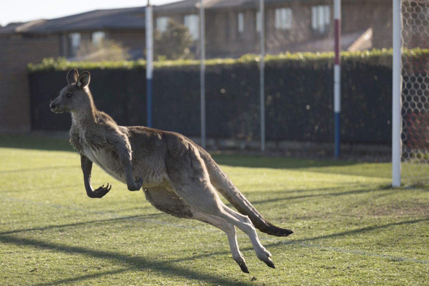 Žaidėjai ir darbuotojai mėgino išvyti nelauktą įsibrovėlę, spardydami į ją kamuolius. Vaizdo įraše matyti, kad kengūra savo ilgomis užpakalinėmis kojomis atmušinėjo kamuolius baudos aikštelėje.