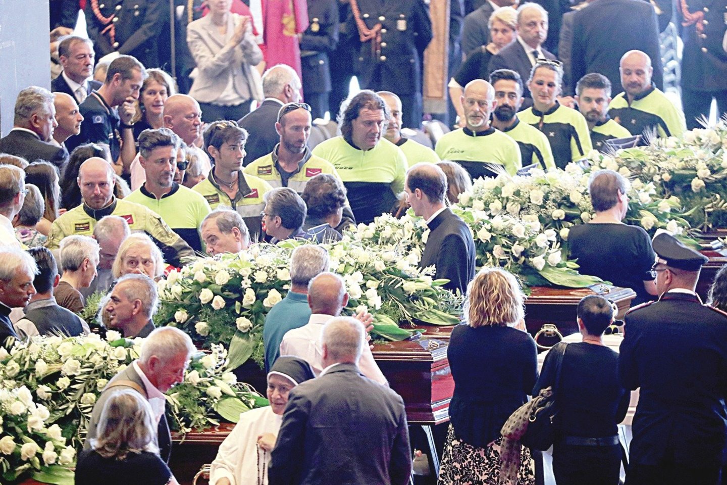 Šeštadienį Genujoje surengtos valstybinės laidotuvės, tačiau daugiau nei pusė pasipiktinusių aukų šeimų jų atsisakė.