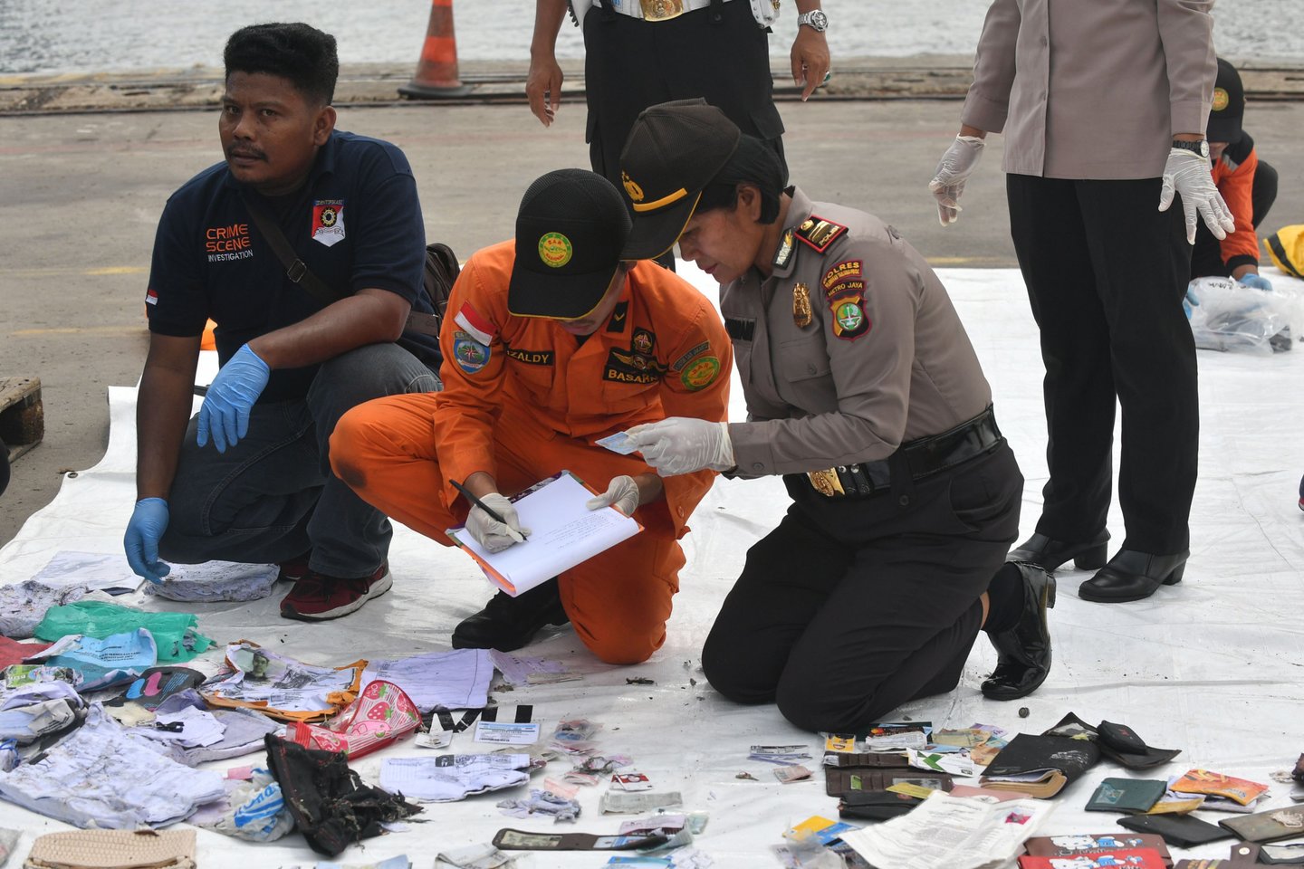 Vaizduose iš sudužimo vietos matyti, kaip du narai priplaukia prie pagalbinio laivo ir įkelia oranžinės spalvos įtaisą į plastikinę dėžę, o ši nugabenama į laivą.