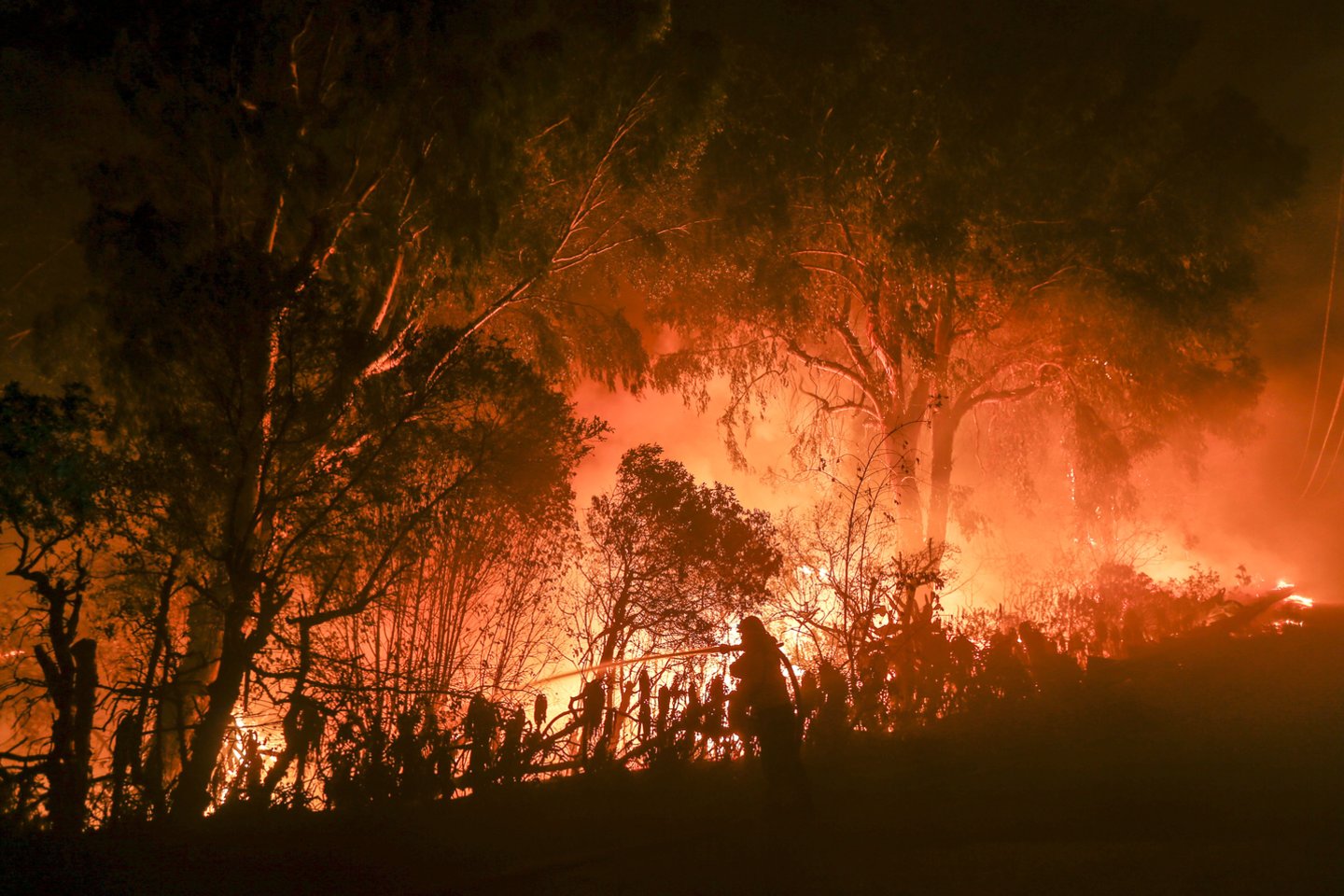Daugiau kaip 2,2 tūkst. ugniagesių kovoja su liepsnomis, padedant sraigtasparniams ir vandenvežiams.