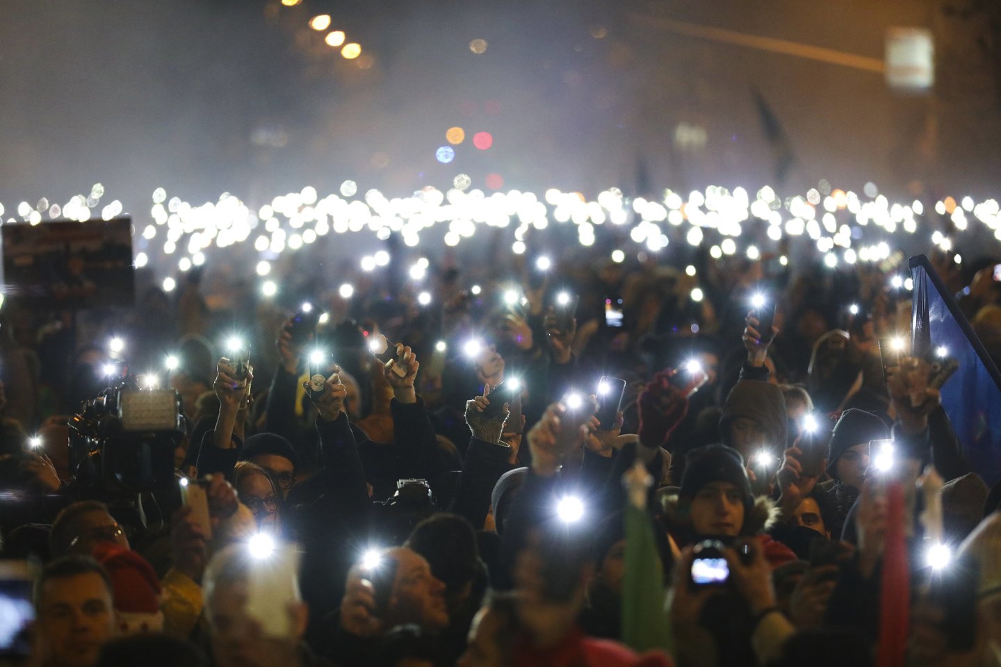 Esant minusinei oro temperatūrai prie parlamento susirinkę protestuotojai skandavo šūkius prieš vyriausybę, o pranešėjai smerkė viršvalandžių taisyklių pataisas, kurias trečiadienį priėmė įstatymų leidėjai.