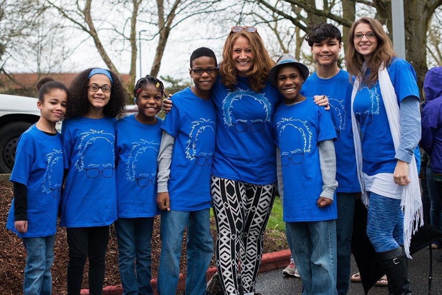 Socialiniuose tinkluose jos dalijosi džiūgaujančių vaikų nuotraukomis: vienose jie laiko ženklus su užrašu „Meilė visada graži“, kitose – plačiai šypsosi vilkėdami vienodais marškinėliais.