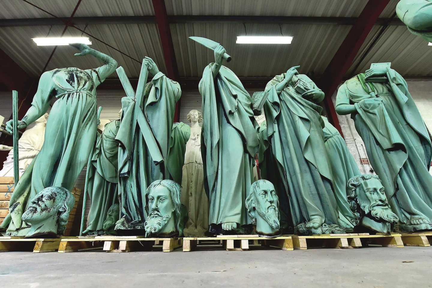 Nuotraukose matyti, kad gaisras visiškai nesunaikino vieno katedros centrinių kūrinių – ant altoriaus stovinčios Nicolas Coustou skulptūros „Žengimas nuo kryžiaus“. Ar ji per gaisrą nukentėjo, kol kas nežinoma.