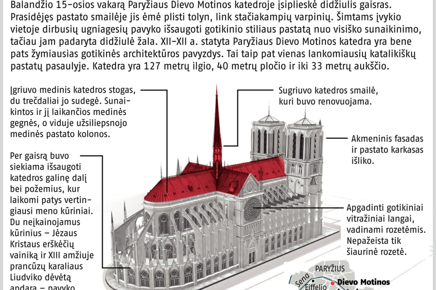 Todėl ne veltui dauguma prancūzų, stebėjusių, kaip pirmadienio vakarą liepsnoja ši XI–XII a. kuorus iškėlusi gotikinė katedra, vadino tai dūriu tiesiai į širdį.