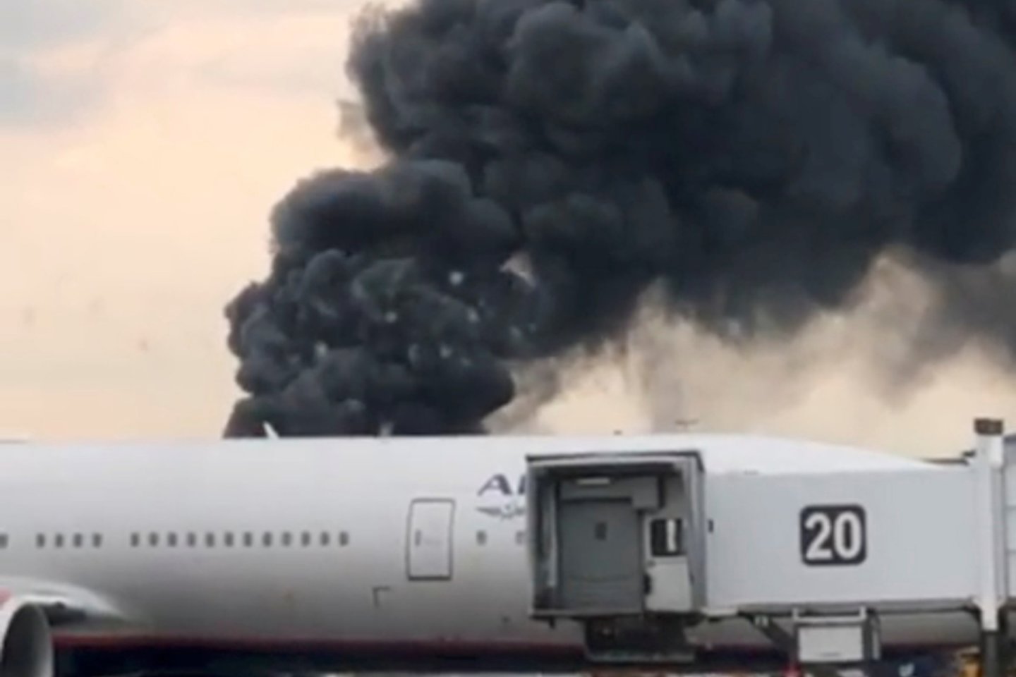 Socialiniuose tinkluose išplito dramatiškas vaizdo įrašas, kuriame matyti, kaip lėktuvas nutupia oro uoste ir dideliu greičiu lekia taku, liepsnoms veržiantis iš fiuzeliažo.