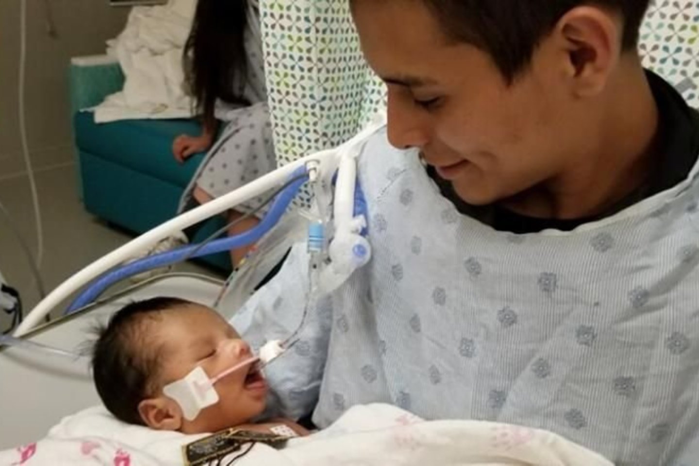 Žiniasklaida paskelbė sekmadienį ligoninėje darytą nuotrauką, kurioje miegantį ir prie gyvybės palaikymo vamzdelių prijungtą kūdikį laiko jo tėvas Yovany Lopezas.