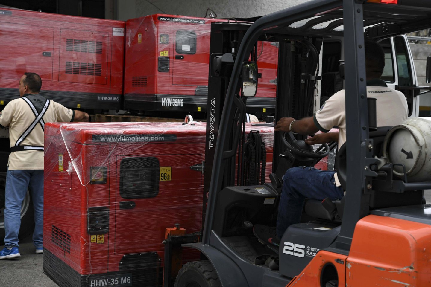 Humanitarinės pagalbos siunta šešiais sunkvežimiais buvo perkelta į Raudonojo Kryžiaus sandėlius Karakase, patvirtino naujienų agentūros AFP žurnalistas.