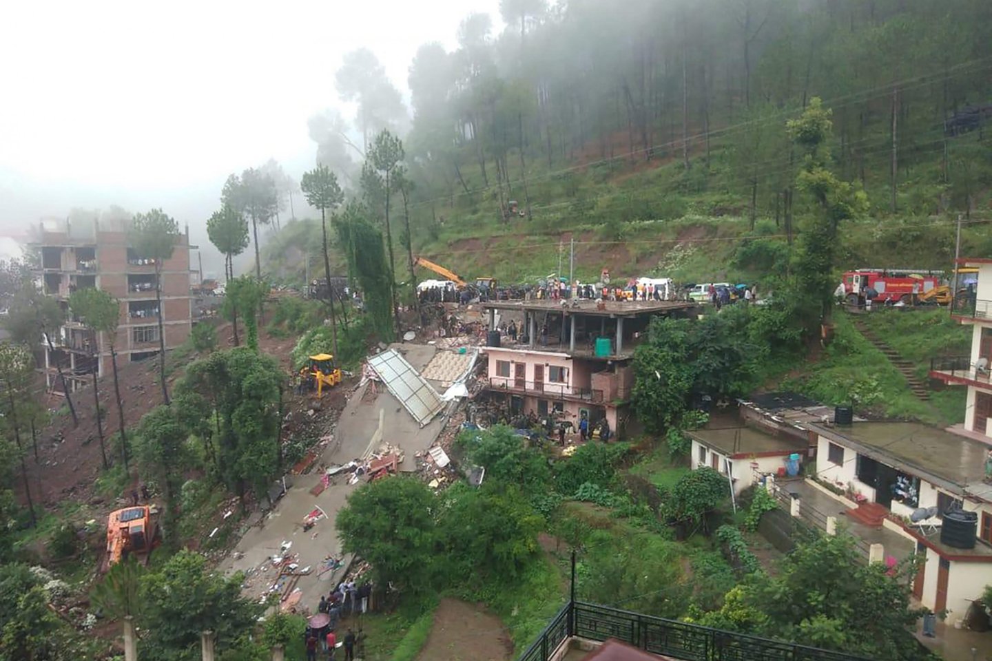 Statinys, esantis netoli daug turistų pritraukiančio Šimlos miesto, sugriuvo sekmadienį, po kelias dienas trukusių smarkių liūčių.