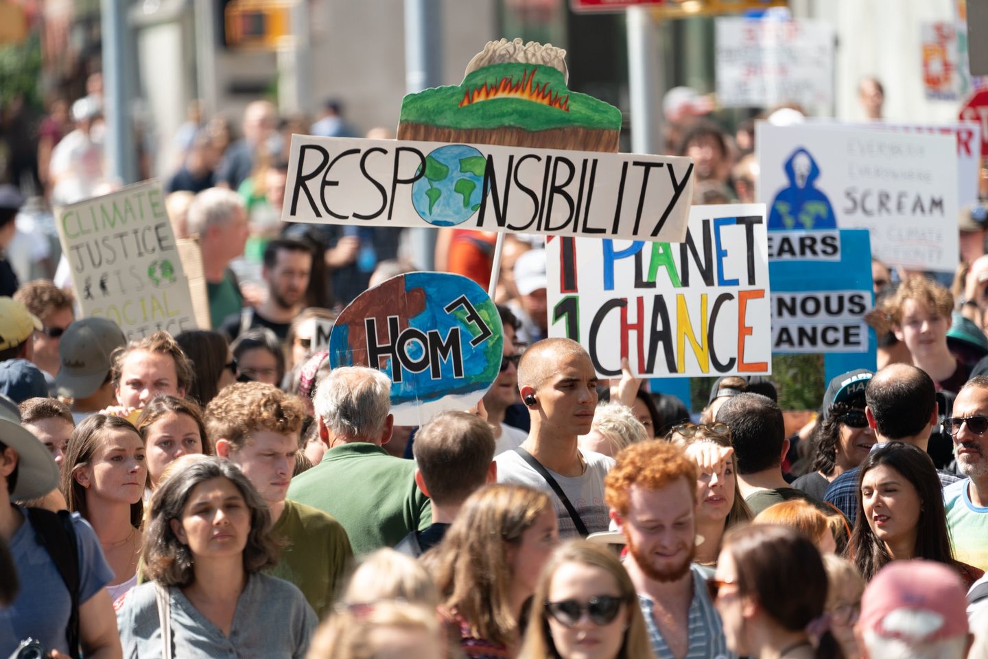 Prie JT būstinės susirinkę keli šimtai protestuotojų, tarp kurių buvo ir vaikų, skandavo: „Liaukitės neigę, kad Žemė miršta“ ir „Mes – kiti rinkėjai“.
