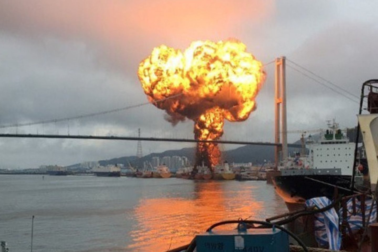 Šeštadienio rytą vietos laiku (naktį į šeštadienį Lietuvos laiku) Ulsano uoste krovininiame laive, gabenusiame naftos produktus iš Kaimanų salų, nugriaudėjo sprogimas, po kurio kilo gaisras. „Yonhap“ duomenimis, ugnis persimetė į kitą laivą, kuriame buvo 21 žmogus, bet juos visus pavyko išgelbėti.