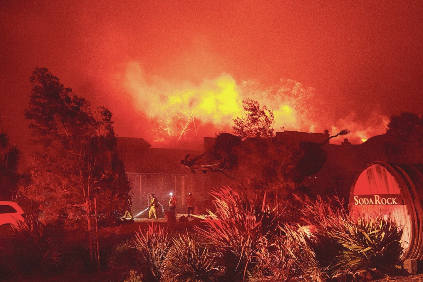 Šiaurės Kalifornijos vynuogynuose šalia San Fransisko iš viso sudegė apie 20 hektarų ploto. Gausybė gyventojų evakuoti dėl pražūtingų gaisrų, kurie sparčiai plinta.