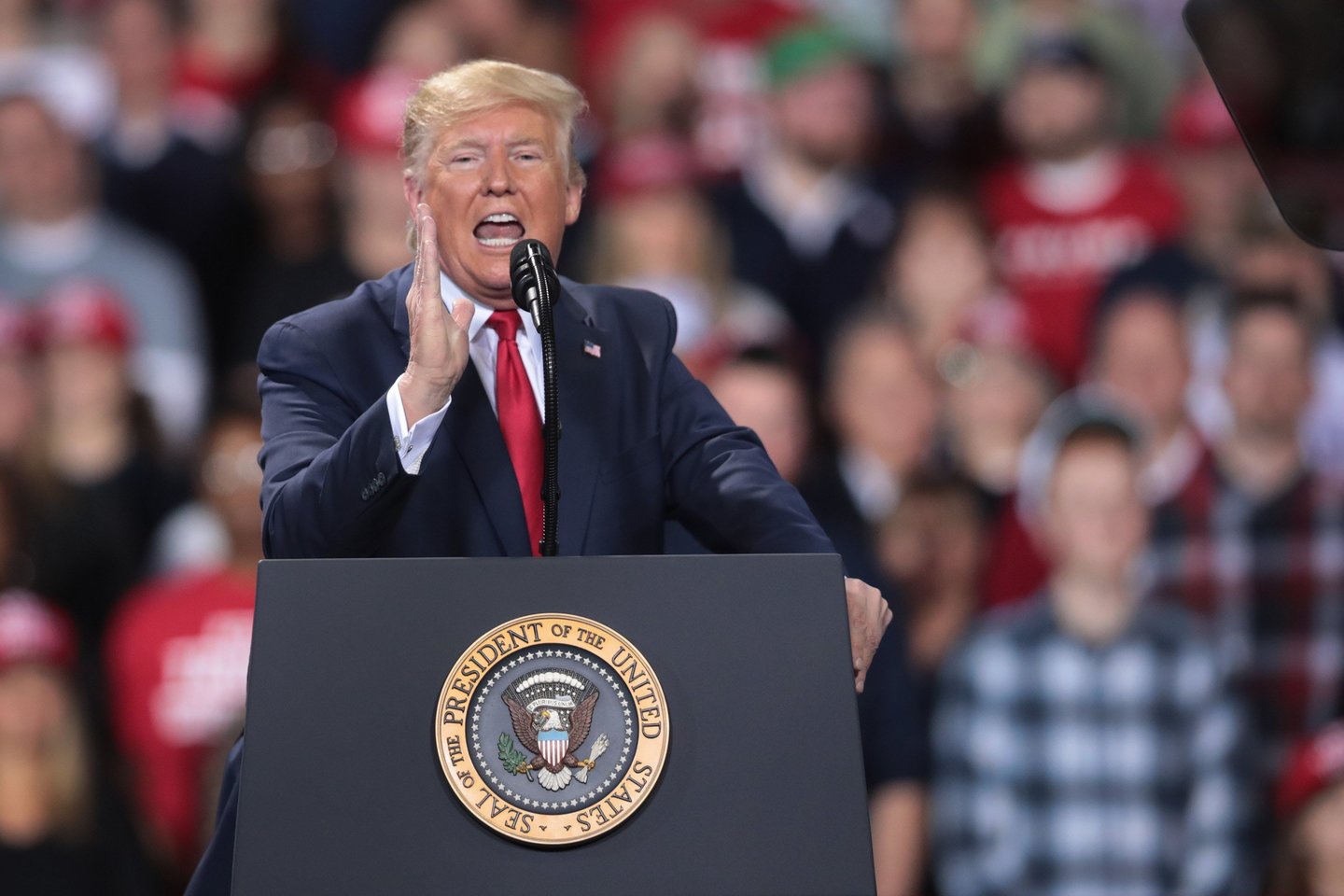 „Atstovų Rūmų demokratai pamynė savo principus ir savigarbą“, – kalėdiniame susitikime su rinkėjais Mičigane sakė D.Trumpas.
